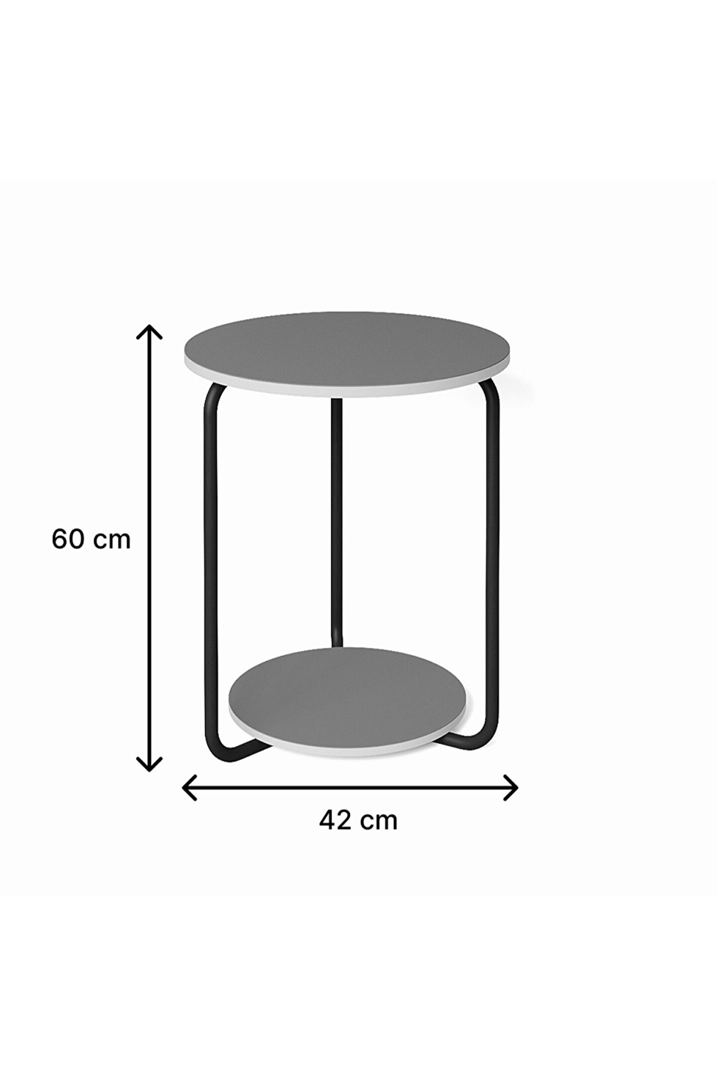 , sahip olduğu özelliklerle öne çıkar. Sehpanın yuvarlak şekli ve ideal ölçüleri kullanışlıdır. Yüksekliği 60 cm, çapı 42 cm olan bu sehpa, hem geniş bir kullanım alanı sunar hem de zarif bir görünüm sağlar. İki raf arası yükseklik 45 cm olup, alt kısımda ekstra depolama alanı sunar. Bu alan, kitaplarınızı, dergilerinizi veya dekoratif objelerinizi düzenli bir şekilde saklamanızı sağlar.