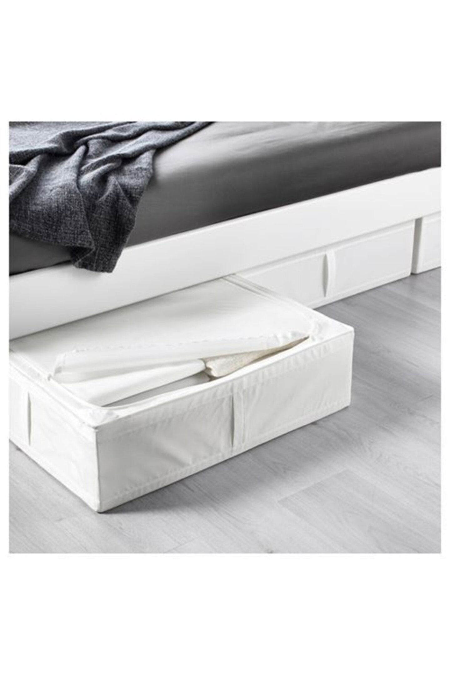 IKEA marka saklama kutusu, yatak altı yastık, çarşaf, nevresim, giysi ve bohça gibi eşyalarınızı düzenli bir şekilde saklamanız için ideal bir çözüm sunar; 69x55x19 cm boyutlarındaki bu kutu, geniş iç hacmiyle birden fazla eşyanızı rahatça sığdırmanıza olanak tanır; Fermuarlı tasarımı sayesinde eşyalarınızı güvenle saklamanızı sağlar ve kolay erişim imkanı sunar; Yıkama talimatlarına uygun şekilde temizlenmesi, ürünün hijyenik kalmasını ve ilk günkü gibi kalmasını sağlar;