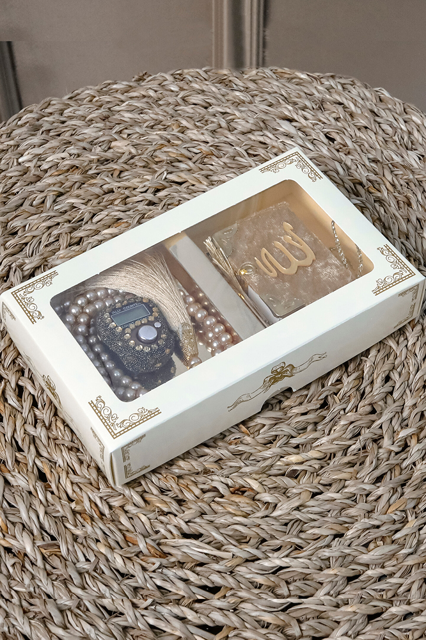 Taşlı Zikirmatik Tesbihmatik Kadife Kaplı Mini Kuran 99lu İnci Tesbih Seti Söz Nişan Mevlid Hac Umre Davet Hediyesi Her siparişte 10 adet gönderilecektir. ; Ürün Özellikleri :1 Adet Püsküllü 99lu İnci Tesbih 1 Adet Kadife Kaplı Gold Korumalıklı Allah cc Lafızlı Mini Kuranı Kerim1 Adet Taşlı Elektronik Yüzük ZikirmatikSüslü Asetat Kutu Özellikleri: 16,5 x 10 x 3 CM KUTU108 GRAM Taşlı Zikirmatik Özellikleri : Taşlı Elektronik Yüzük Zikirmatik (Numaratör)5 Hanelidir99999'a Kadar SayarParmağa Yüzük Gibi Takılarak Zikir Çekilebilir.LCD EkranlıHafızalıdır, Bıraktığınız Sayıdan Zikrinize Devam EdebilirsinizTeknolojik Tesbih ile Avucunuzun İçinde Tesbih ÇekinTavaf Yaparken, Yürürken, Otobüste, Arabada Kullanabilirsiniz. ; 99'lu Kristal Taşlı Tesbih Özellikleri :99'luPüsküllüKristal Taşlı Kadife Kaplı Mini Kuranı Kerim Özellikleri : Kadife KaplıGold Köşe KorumalıAllah cc Lafızlı5 x 5 cm;