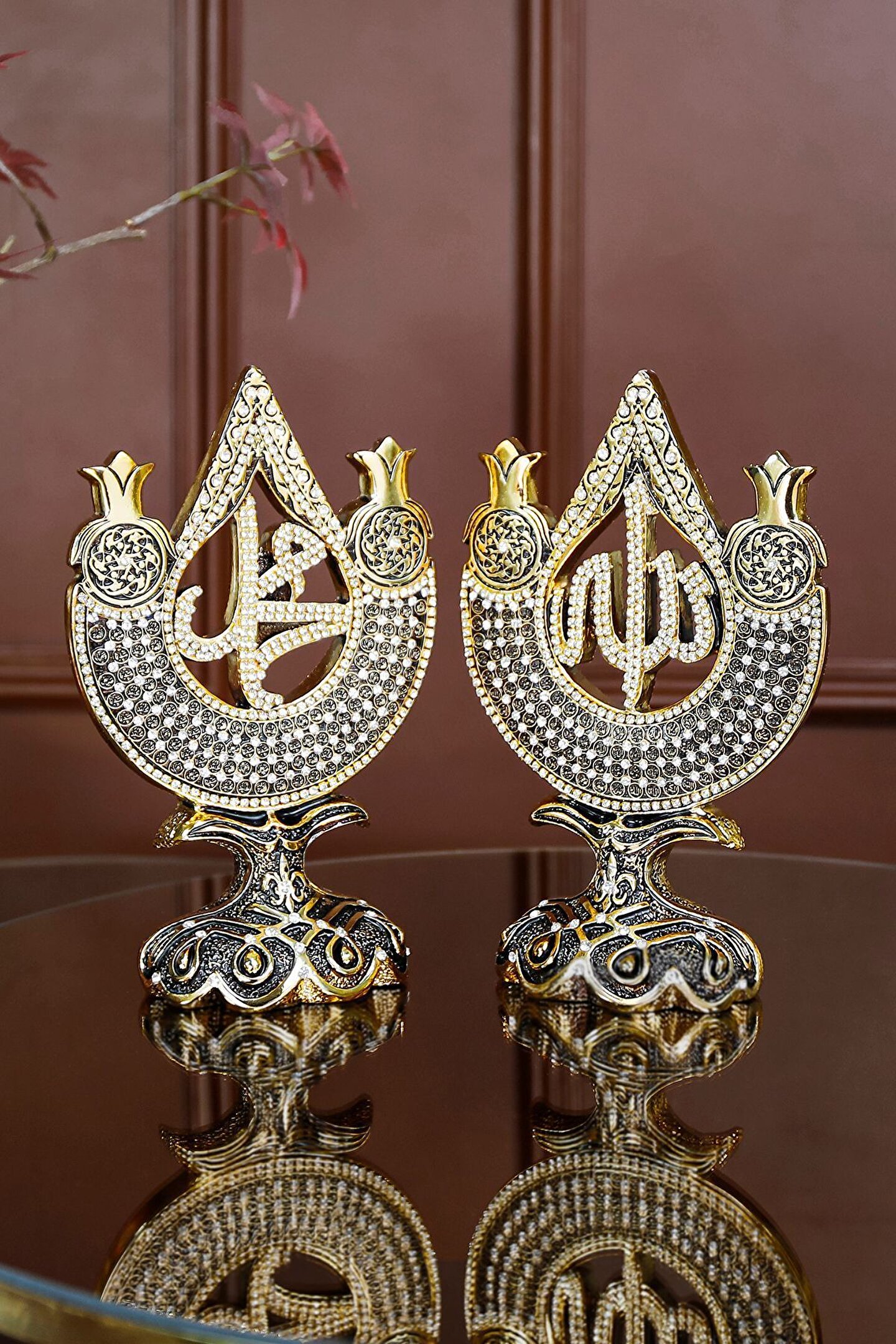 İki Lafız, Bir Set: Allah (C; C) ve Muhammed (S; A; S) Aksesuar Seti! ?? Bu muazzam set, kalbinizdeki imanın ve sevginin bir ifadesi; Tasarımın gövdesinde Allahu Teala'nın en güzel isimleri yani "Esmaül Hüsna" bulunuyor; Üstünde ise bir yanda "Allah", diğer yanda "Muhammed" lafızları, bir arada anlam ve aşkla buluşuyor; ? Her detayı, özenle tasarlanmış ve kalp şeklindeki bu aksesuar seti, imanın ve sevginin güzelliklerini gündelik hayatınıza taşıyor; Bu zarif ve anlamlı set, Allah'a ve Sevgili Peygamberimize duyulan derin sevginizi simgeliyor; ? Bu özel set, günlük yaşamınıza manevi bir dokunuş katmak için mükemmel bir yol olarak sizleri bekliyor; Evde, ofiste veya sevdiklerinizin bulunduğu mekanlarda, sizi çok seven iki sevgiliyi size hatırlatırken, güzellik ve huzur hissini deneyimleme fırsatı sunuyor; ?? Sevgiyi ve imanı bir araya getiren bu setle, gündelik yaşamınızı anlam dolu kılın; Allah ve Muhammed aşkını kalplerinizde taşıyan bu zarif aksesuar seti, her anınızı güzellikle doldursun; ??? Hemen sipariş için ürün kodu: CN 48 ? Ürün Özellikleri: Orijinal Tasarım El Yapımı ve Yüksek Kaliteli Metalize Sert Polyester Malzeme Altın Kaplama 30x20 cm 1490 gr El İşçiliği ? Kullanım Alanları: Yaşam alanlarına zarafet katmak için, Manevi bir hediye olarak, Dekoratif süs olarak, Anneye, Babaya, Eşe Hediye olarak, Yıldönümü, Doğum Günü, Terfi, Ev ve Ofis Hediyesi Olarak, Bereketin simgesi olması için, Maneviyatı hatırlatması için, Başarı ve sanatsal üretime ilham olması için, Kurumsal hediye ve diğer alanlarda kullanılabilir;
