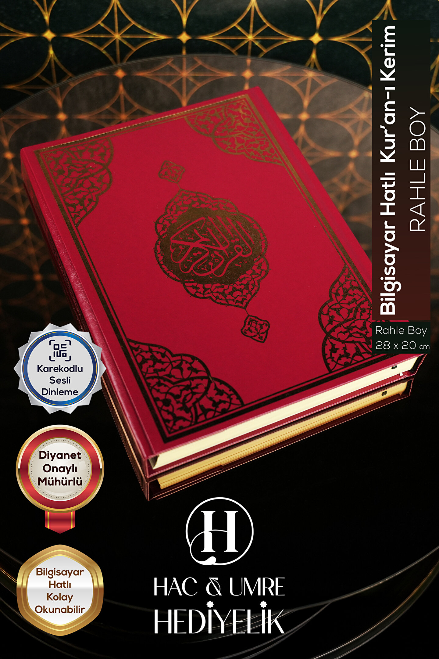 Rahle Boy Bilgisayar Hatlı Kuran-ı Kerim, şık cilt bezi kapak tasarımı, kaliteli şamua kağıdı ve kolay okunabilir bilgisayar hattı ile hazırlanmıştır. Rahle boy (20x28 cm) ölçüsü sayesinde rahat bir okuma deneyimi sunar. İbadetlerinizde ve günlük okumalarınızda göz yormayan yapısıyla tercih edilen bir eserdir.