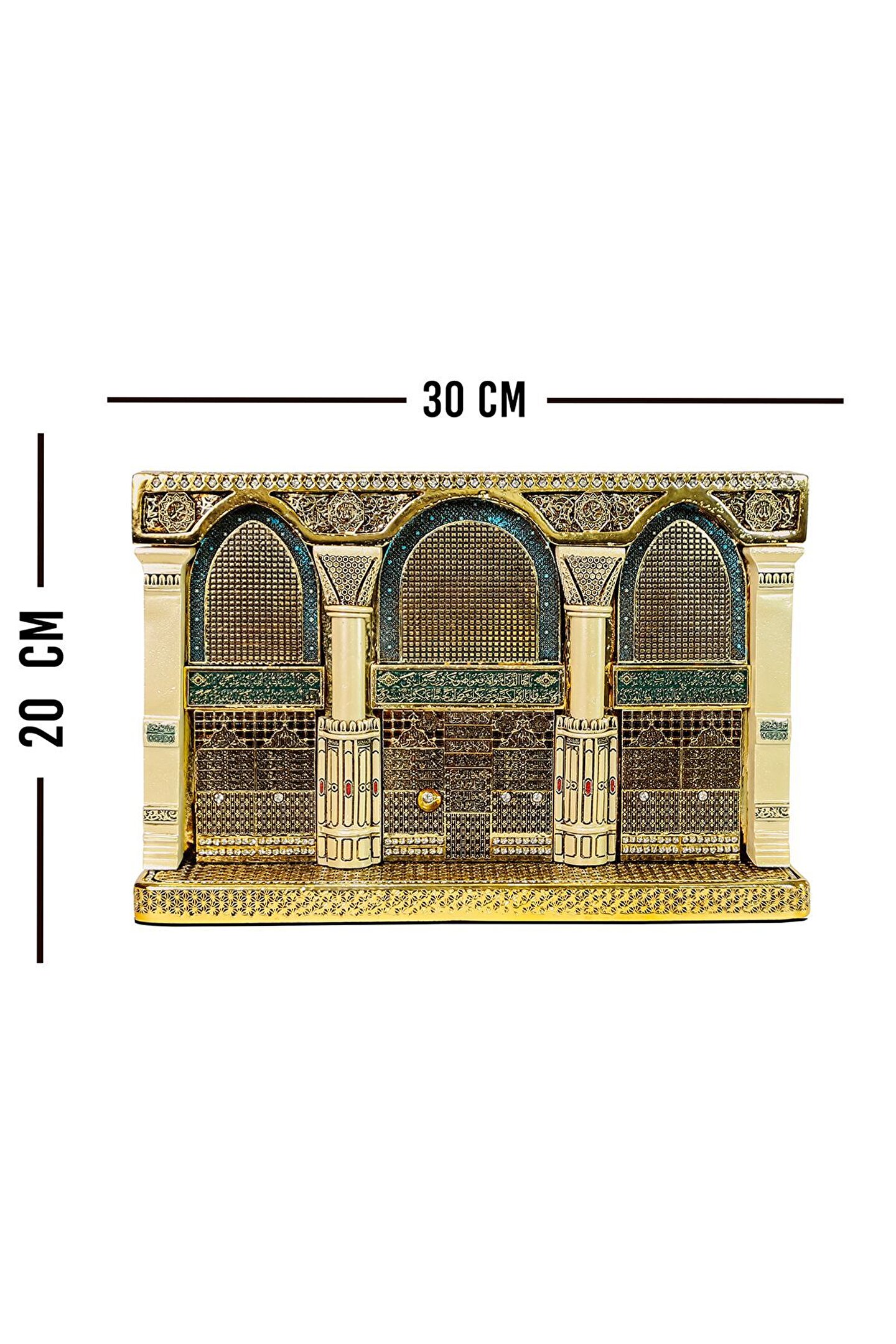 Mescidi Nebevi Selamlama Kapısı Dekoratif Figürü? Bu özel biblo, Mescidi Nebevi'nin eşsiz mimarisindeki selamlama kapısının zarif bir temsiliyle ön plana çıkıyor; Mescidi Nebevi, İslam'ın kutsal mekanlarından biri olan Medine'de bulunan bu muazzam cami, Peygamberimizin (S; A; V) kabrine ev sahipliği yapan kutsal mekandır; ? Selamlama kapısı, Mescidi Nebevi'nin girişinde yer alan ve ziyaretçileri efendimizi selamlamaya yönlendiren özel bir kapıdır; Bu biblo, bu kutsal mekanın sembolik bir temsilini sunarak, evinize veya ofisinize manevi bir atmosfer katmayı amaçlıyor; ? Her bir detayı özenle işlenmiş olan bu eser, İslam'ın kutsal mirasını yansıtarak, evinizi sadece estetik bir güzellikle donatmanın ötesinde, manevi bir anlamla dolduruyor; Mescidi Nebevi Selamlama Kapısı Biblosu, gönlü efendimizin sevgisiyle yanıp tutuşanlar için tasarlandı; Yaşam alanlarınızı bu anlamlı eserle güzelleştirmek için hemen keşfedin! ? Ürün Özellikleri: Orijinal Tasarım El Yapımı ve Yüksek Kaliteli Metalize Sert Polyester Malzeme Altın Kaplama 30x20 cm 2135 gr El İşçiliği ? Kullanım Alanları: Yaşam alanlarına zarafet katmak için, Manevi bir hediye olarak, Dekoratif süs olarak, Anneye, Babaya, Eşe Hediye olarak, Yıldönümü, Doğum Günü, Terfi, Ev ve Ofis Hediyesi Olarak, Bereketin simgesi olması için, Maneviyatı hatırlatması için, Başarı ve sanatsal üretime ilham olması için, Kurumsal hediye ve diğer alanlarda kullanılabilir;