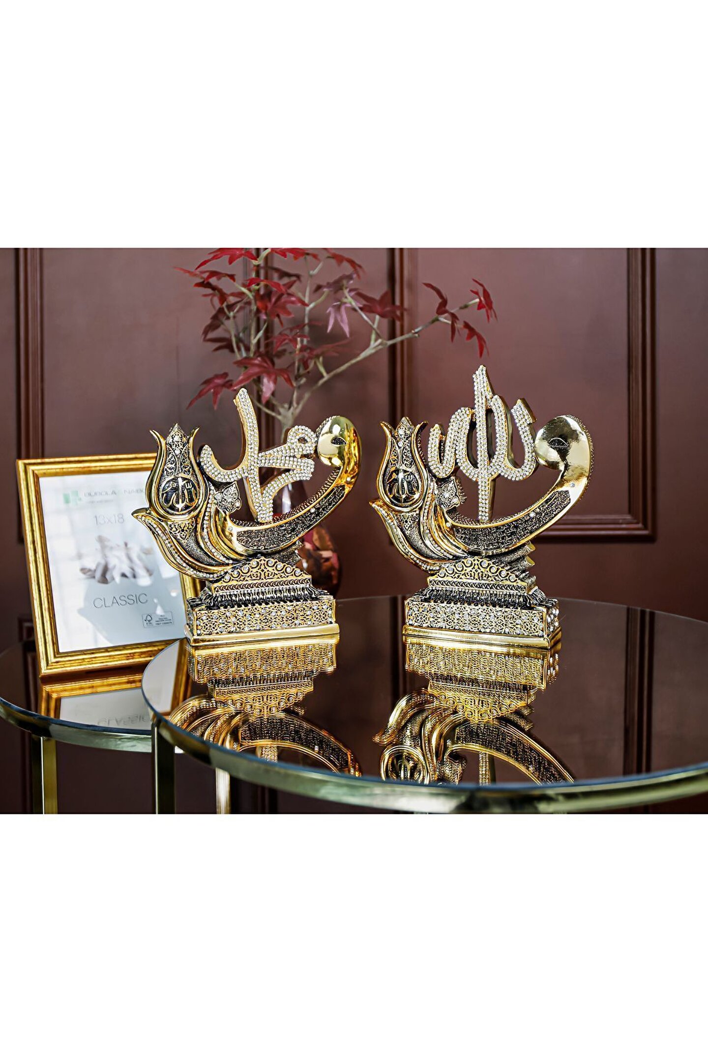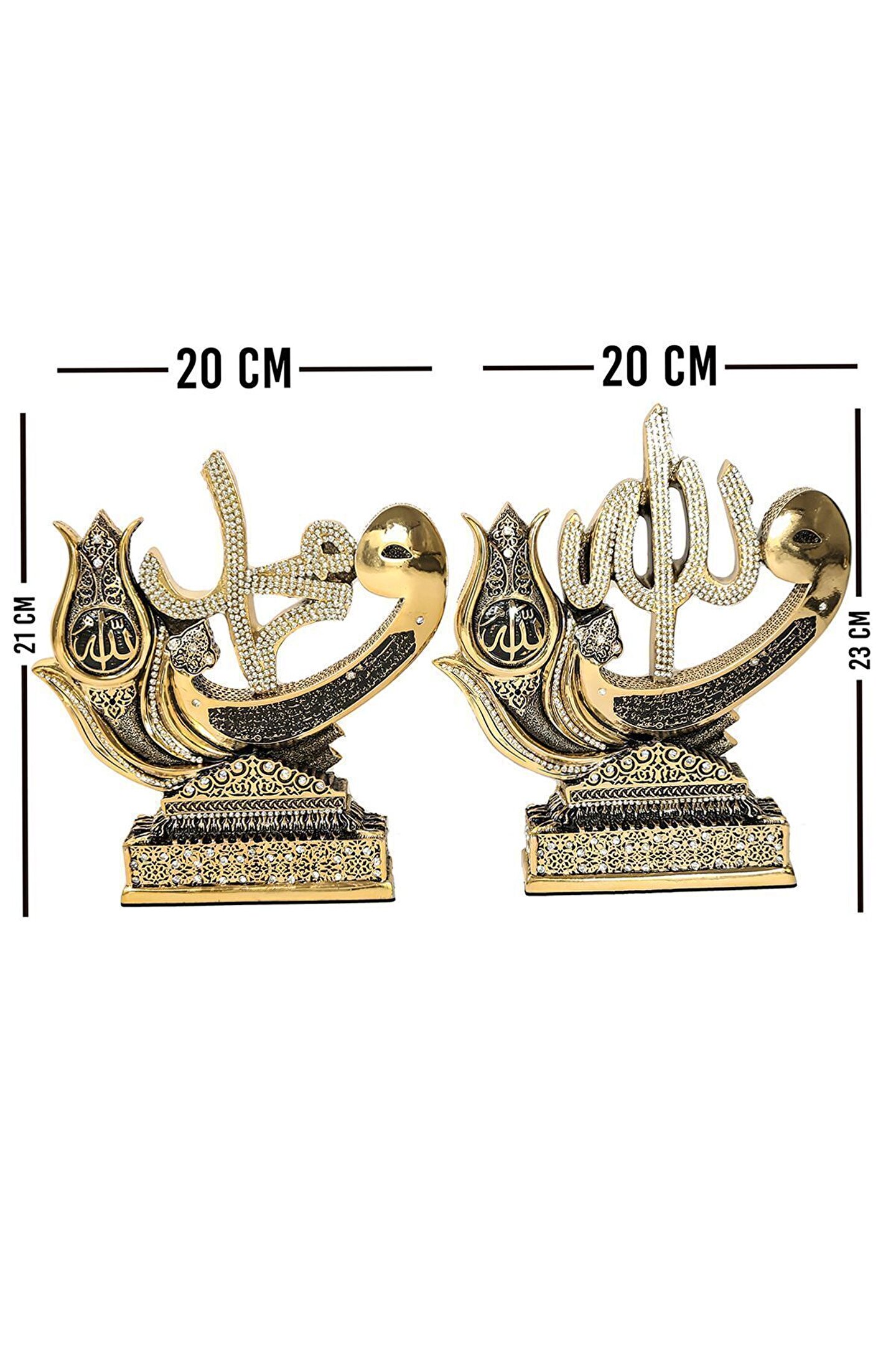 Sanatın İlahi Yansıması: Vav, Lale ve Lafızlar Dekoratif Biblo Seti ? Bu özel biblo, zarif vav ve lale motifleriyle süslenmiş, ortasında ise Allah ve Muhammed lafzlarıyla taçlandırılmıştır; Her detayı özenle işlenmiş bu eser, estetikle mananın uyumunu yansıtarak evinize benzersiz bir güzellik katıyor; Evinizi veya ofisinizi bu özel biblo ile süsleyerek, her bakışta sanatın ve İlahi kudretin gölgesini hissedebilirsiniz; Ayrıca sevdikleriniz için hediyelik olarak tercih edebilirsiniz ? Hemen sipariş için ürün kodu: CN 105 ? Ürün Özellikleri: Orijinal Tasarım El Yapımı ve Yüksek Kaliteli Metalize Sert Polyester Malzeme Altın Kaplama 20x23 cm 840+785 gr El İşçiliği ? Kullanım Alanları: Yaşam alanlarına zarafet katmak için, Manevi bir hediye olarak, Dekoratif süs olarak, Anneye, Babaya, Eşe Hediye olarak, Yıldönümü, Doğum Günü, Terfi, Ev ve Ofis Hediyesi Olarak, Bereketin simgesi olması için, Maneviyatı hatırlatması için, Başarı ve sanatsal üretime ilham olması için, Kurumsal hediye ve diğer alanlarda kullanılabilir;