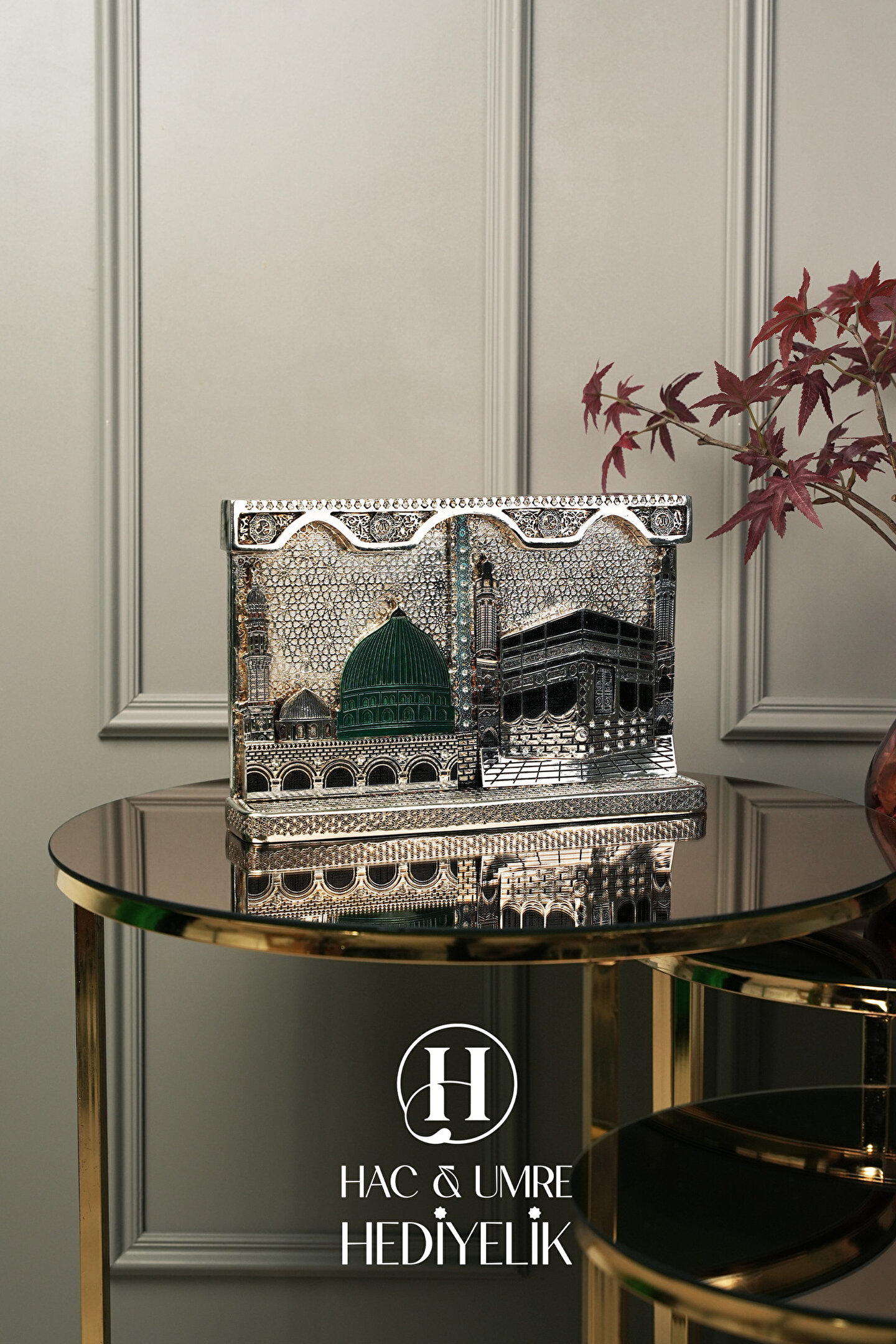 ✨ Kâbe ve Mescid-i Nebevi Temalı Gümüş Dekoratif Biblo