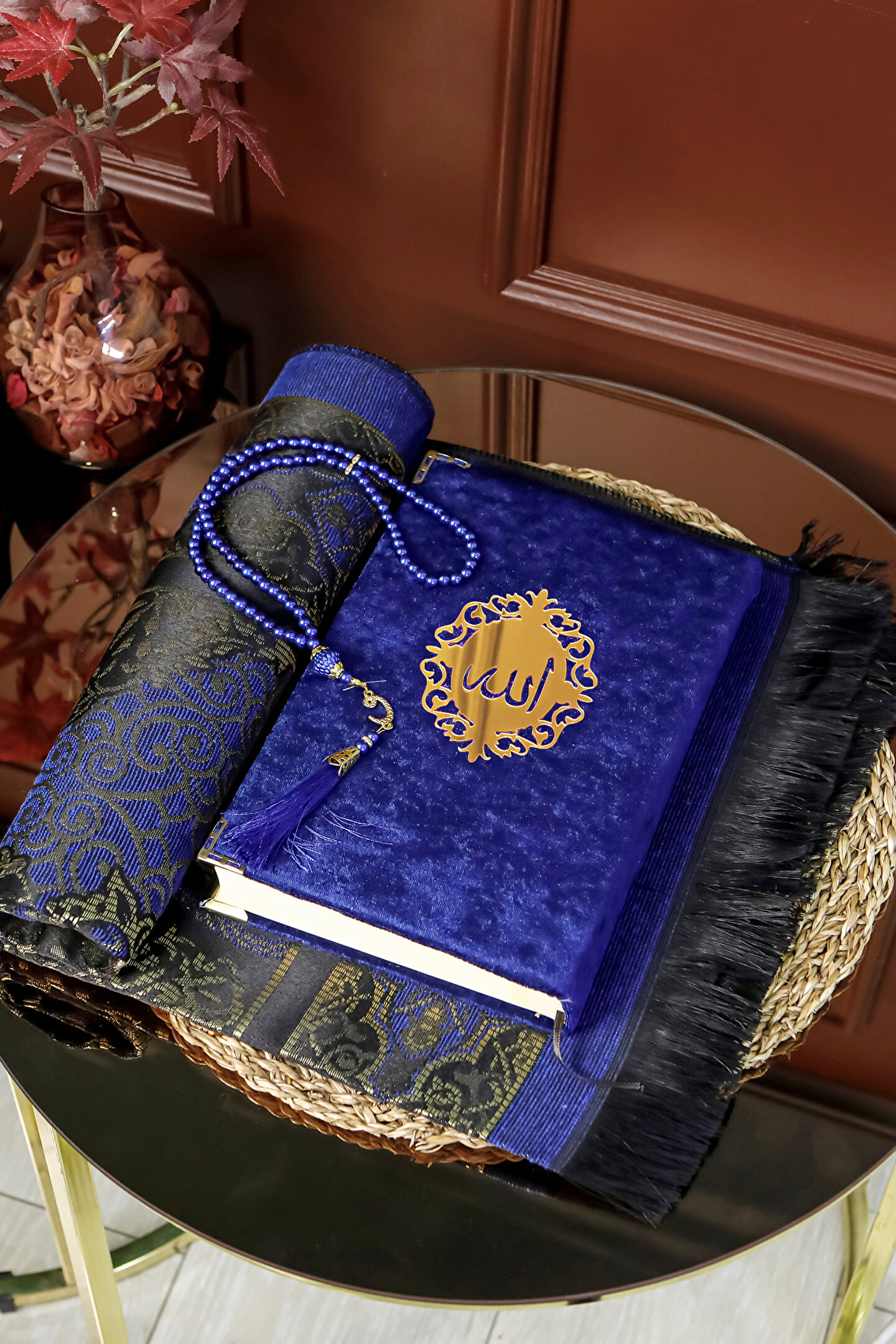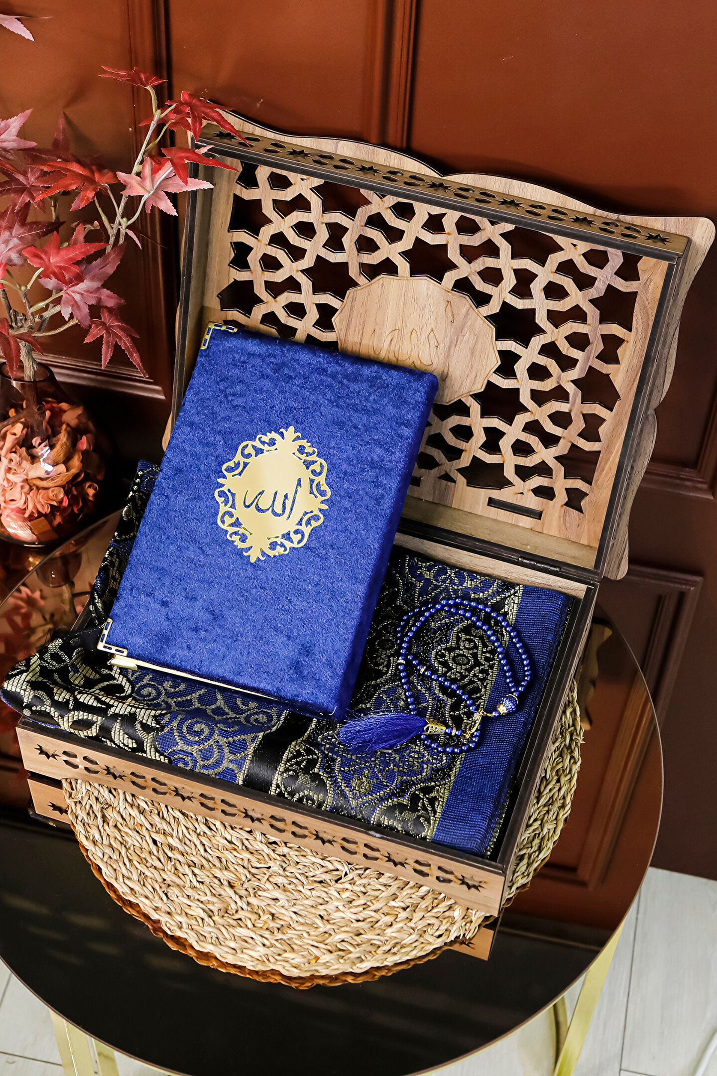 Hac Umre Hediyelik Hediyelik Kuran Seti Rahleli Ahşap Kuran Standı Kadife Kuran İnci Tesbih Seccade Seti