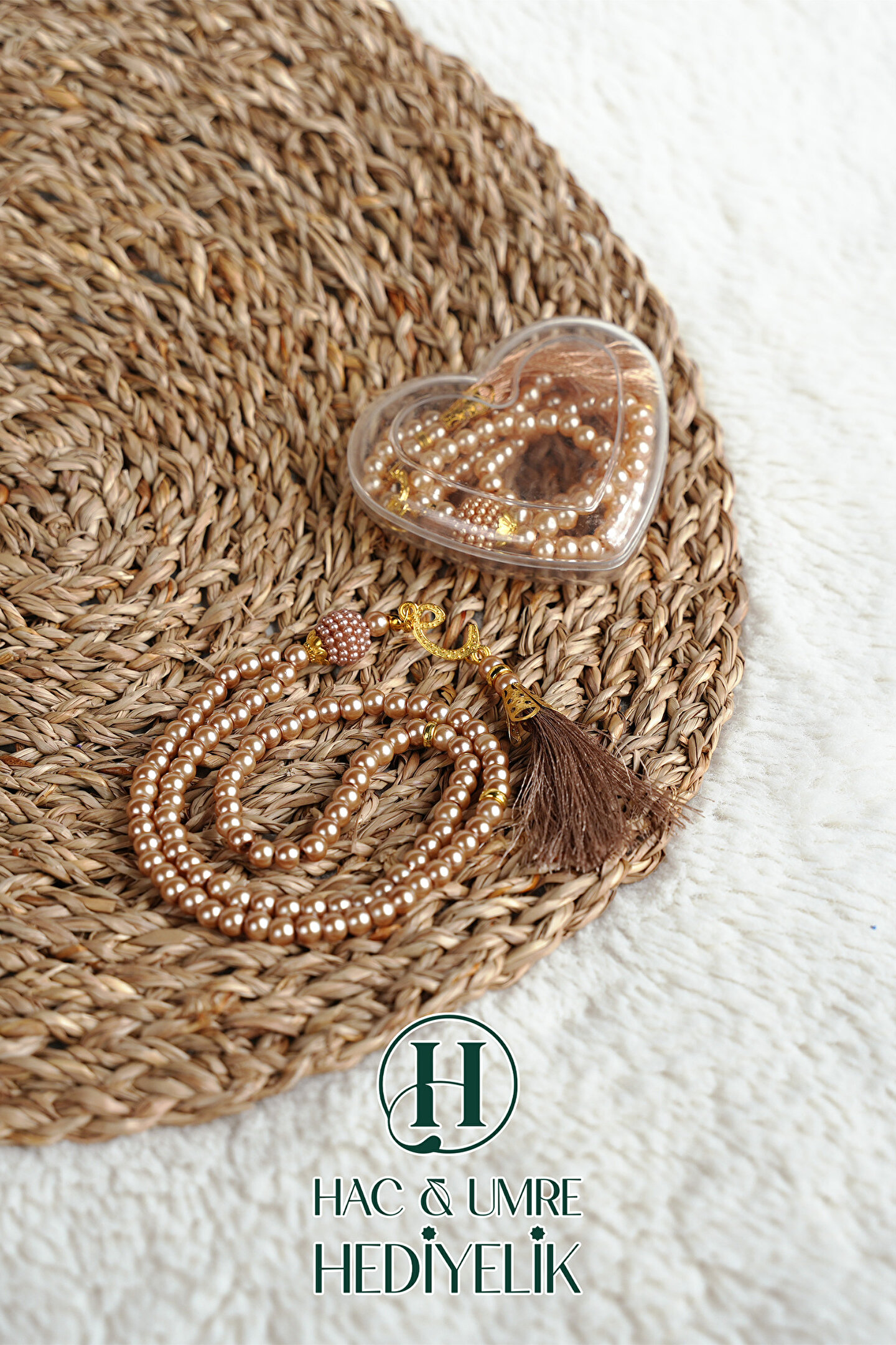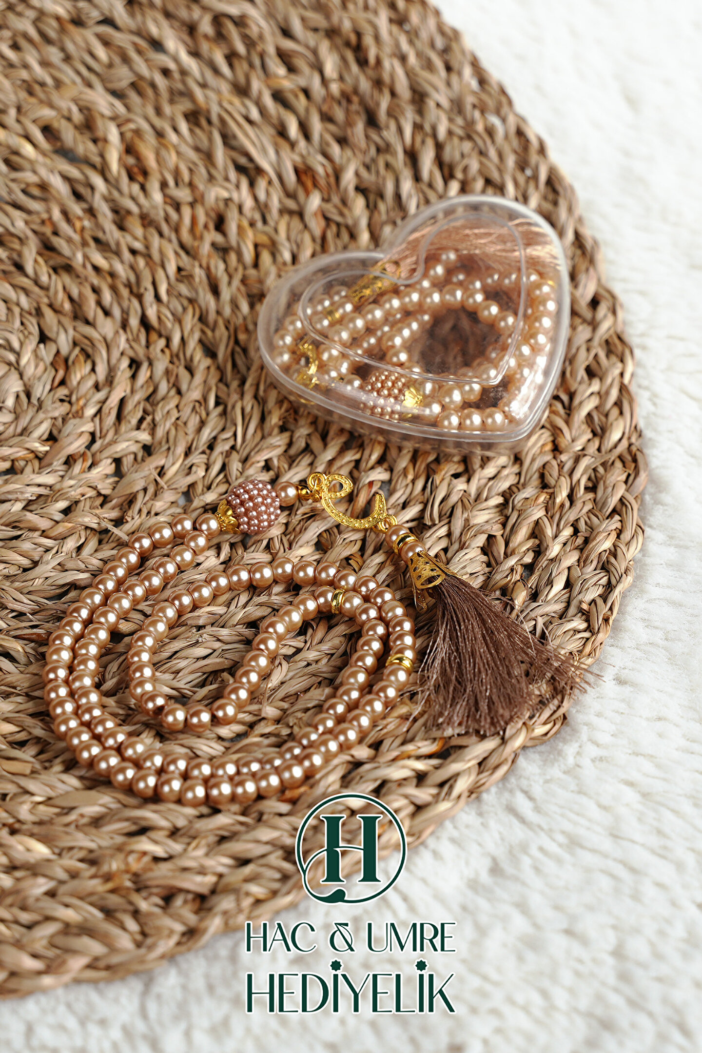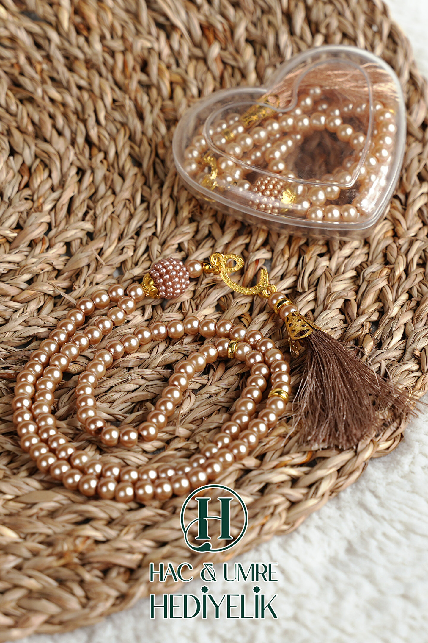 Hac Umre Hediyelik Hediyelik Tesbih | 99lu İnci Tesbih Vav İmameli Püsküllü Kalp Kutulu | Hac Umre Gün Davet Hediyesi