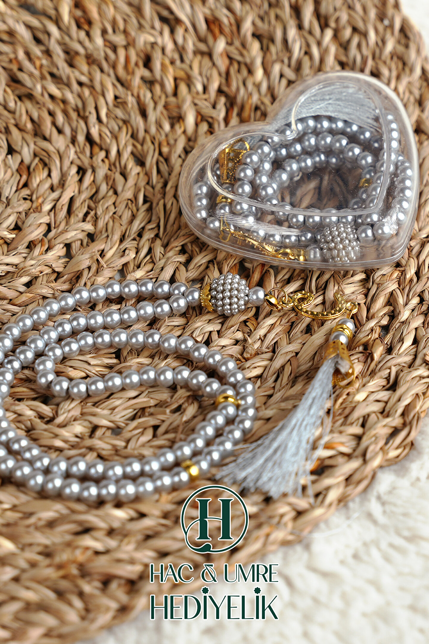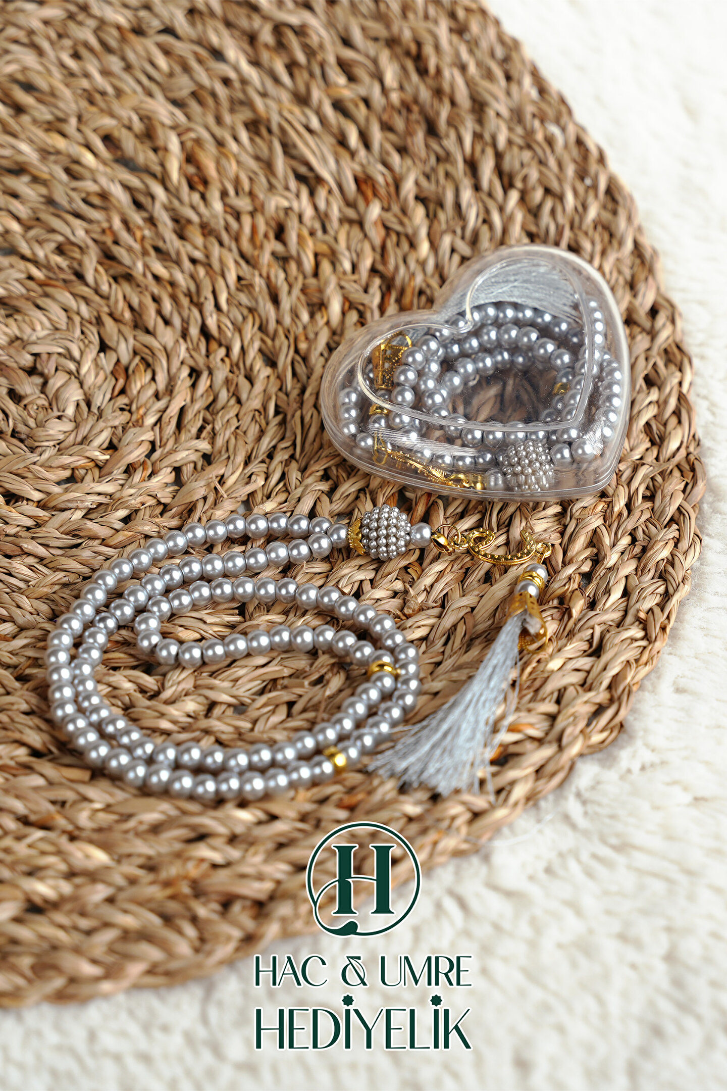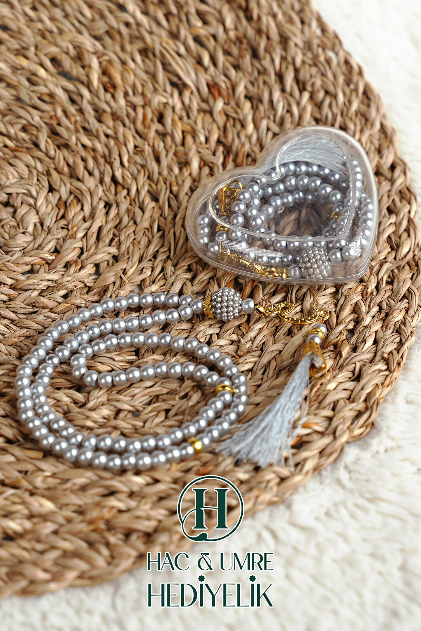 Hac Umre Hediyelik Hediyelik Tesbih | 99lu İnci Tesbih Vav İmameli Püsküllü Kalp Kutulu | Hac Umre Gün Davet Hediyesi