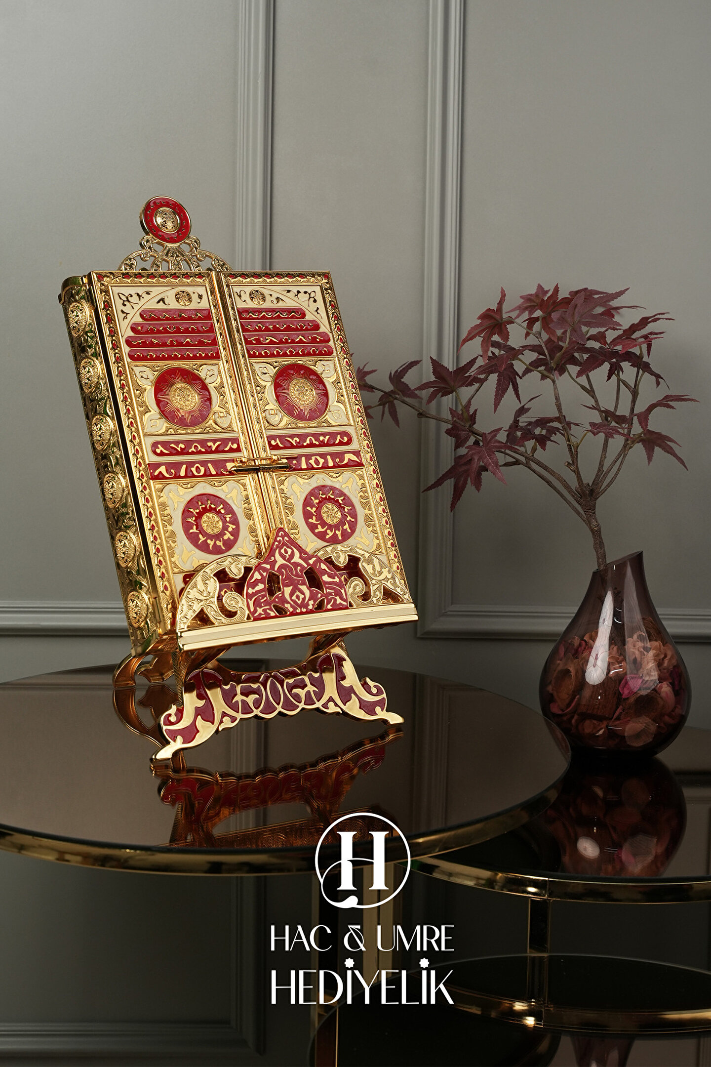 Hac Umre Hediyelik Kuran Kabı | Kuran Standı | Desenli Standlı Kuran Kabı ve Kadife Kuran Hediyeli | Kuranı Kerim Seti