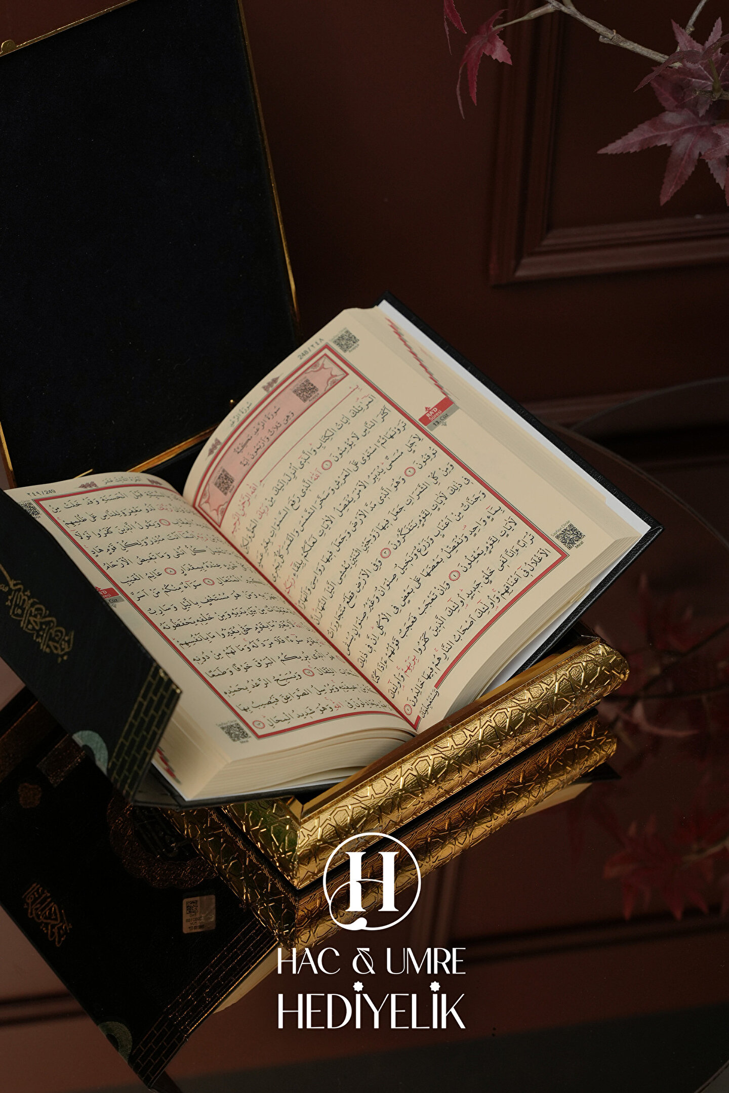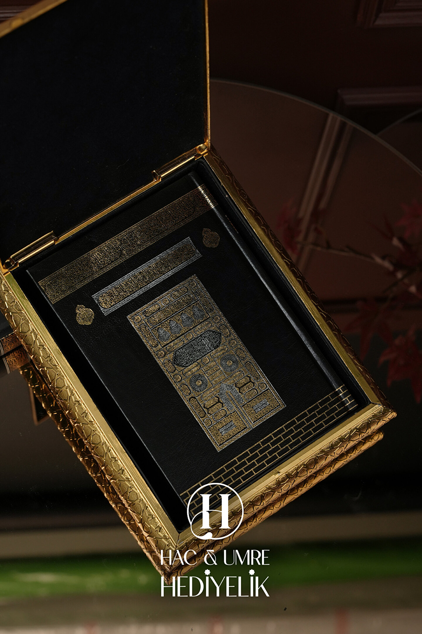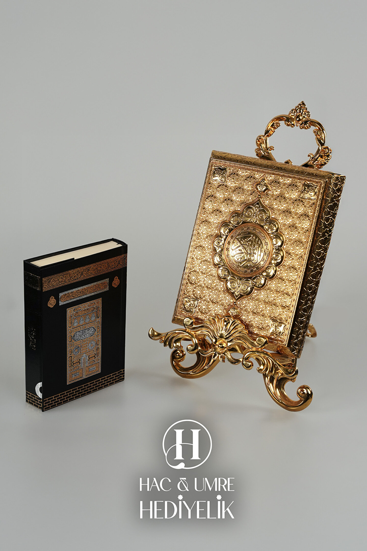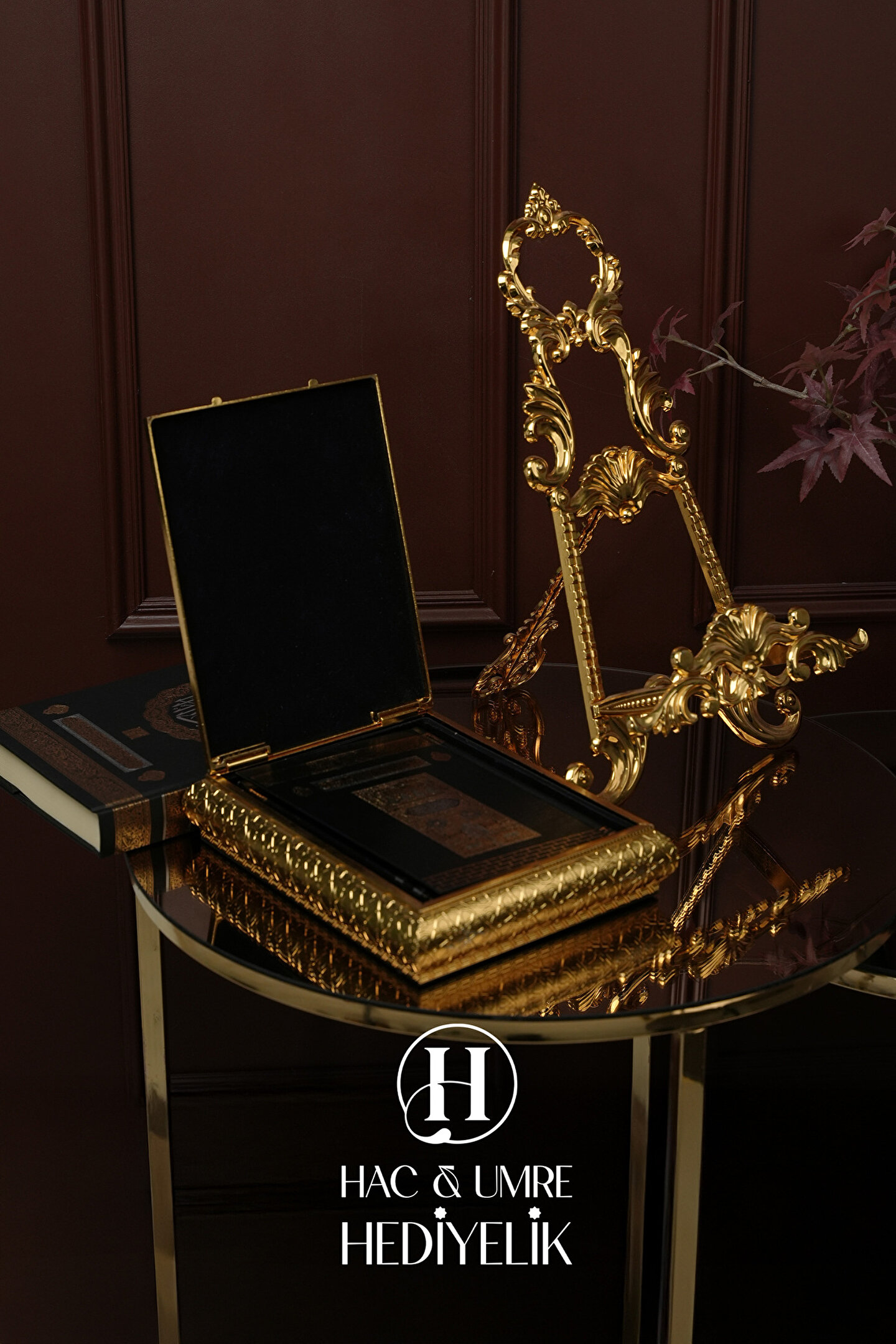 Hac Umre Hediyelik Kuran Standı ve Kuranı Kerim | Lüks Dekoratif Kuran Kabı ve Kuran Seti | Gold Kuran Muhafazası Seti