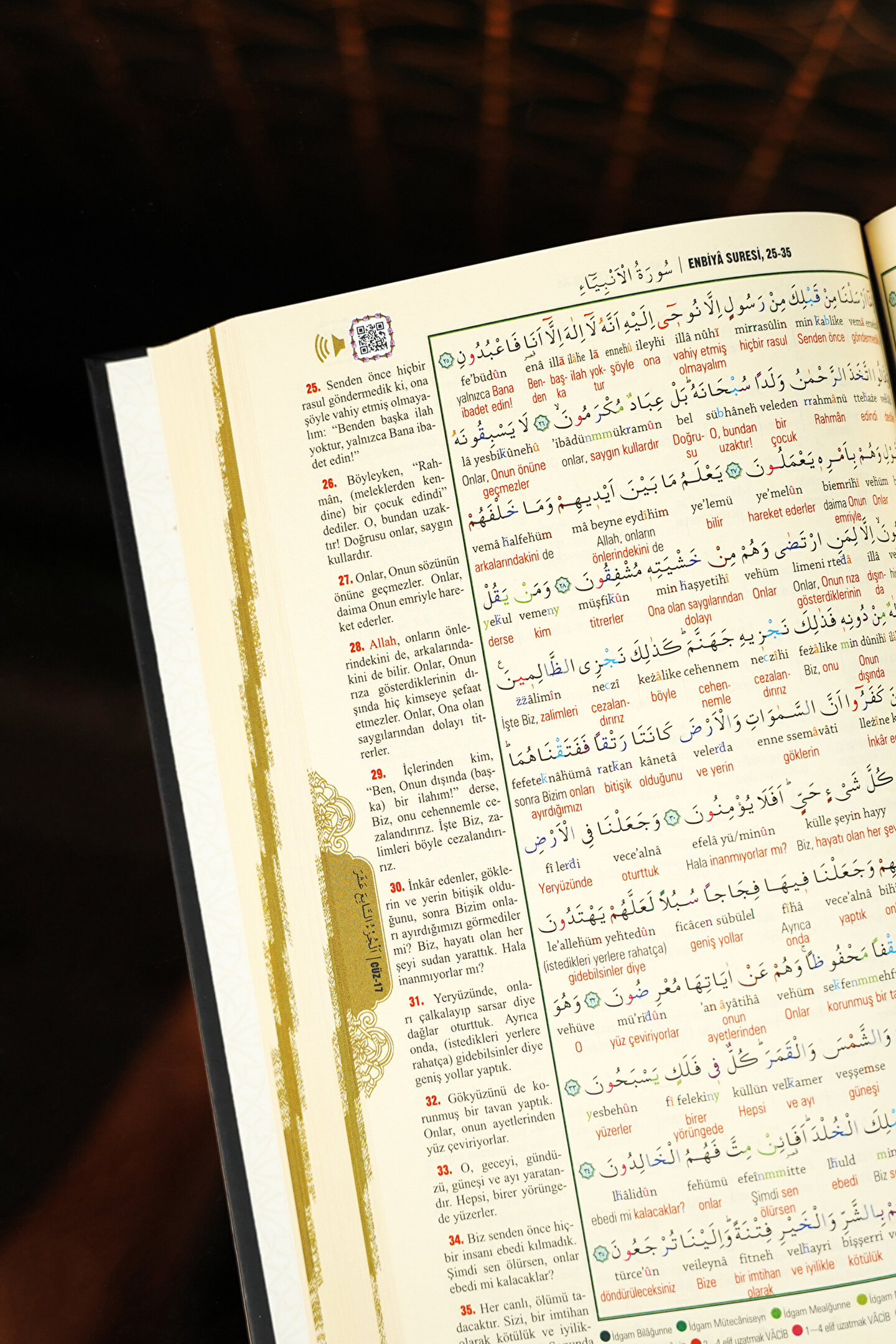 Bu özel Kuran-ı Kerim, Elmalılı Hamdi Yazır meali ile Prof. Dr. Mustafa Özel tarafından sadeleştirilmiştir. Bilgisayar hattı ile basılmış, Türk imlasına (Aliyyül Kâri) uygun hazırlanmış ve kolay okunabilir yapısıyla dikkat çeker. 7 farklı özelliği ve QR kod desteği ile hem modern hem de geleneksel bir kullanım imkânı sunar.