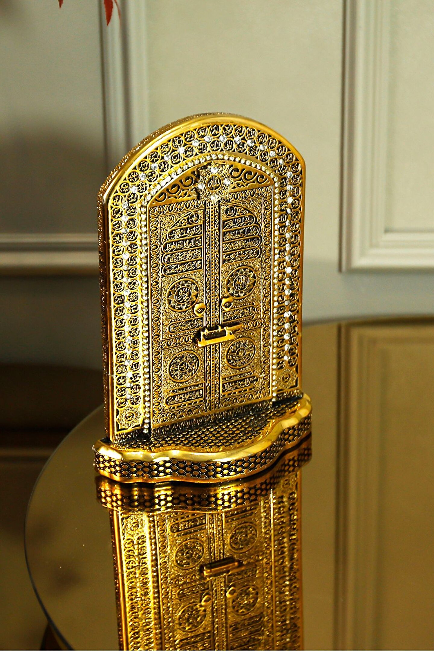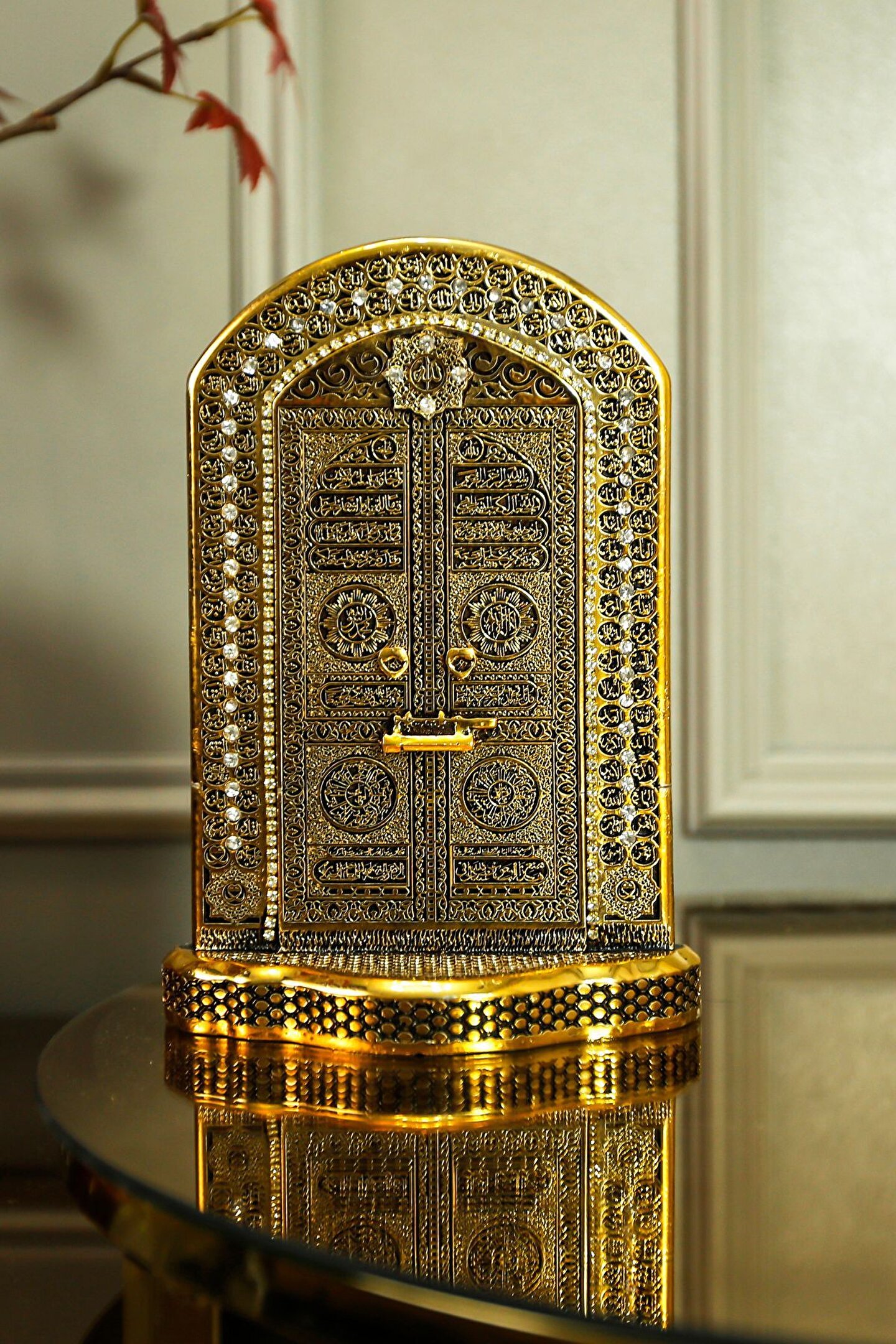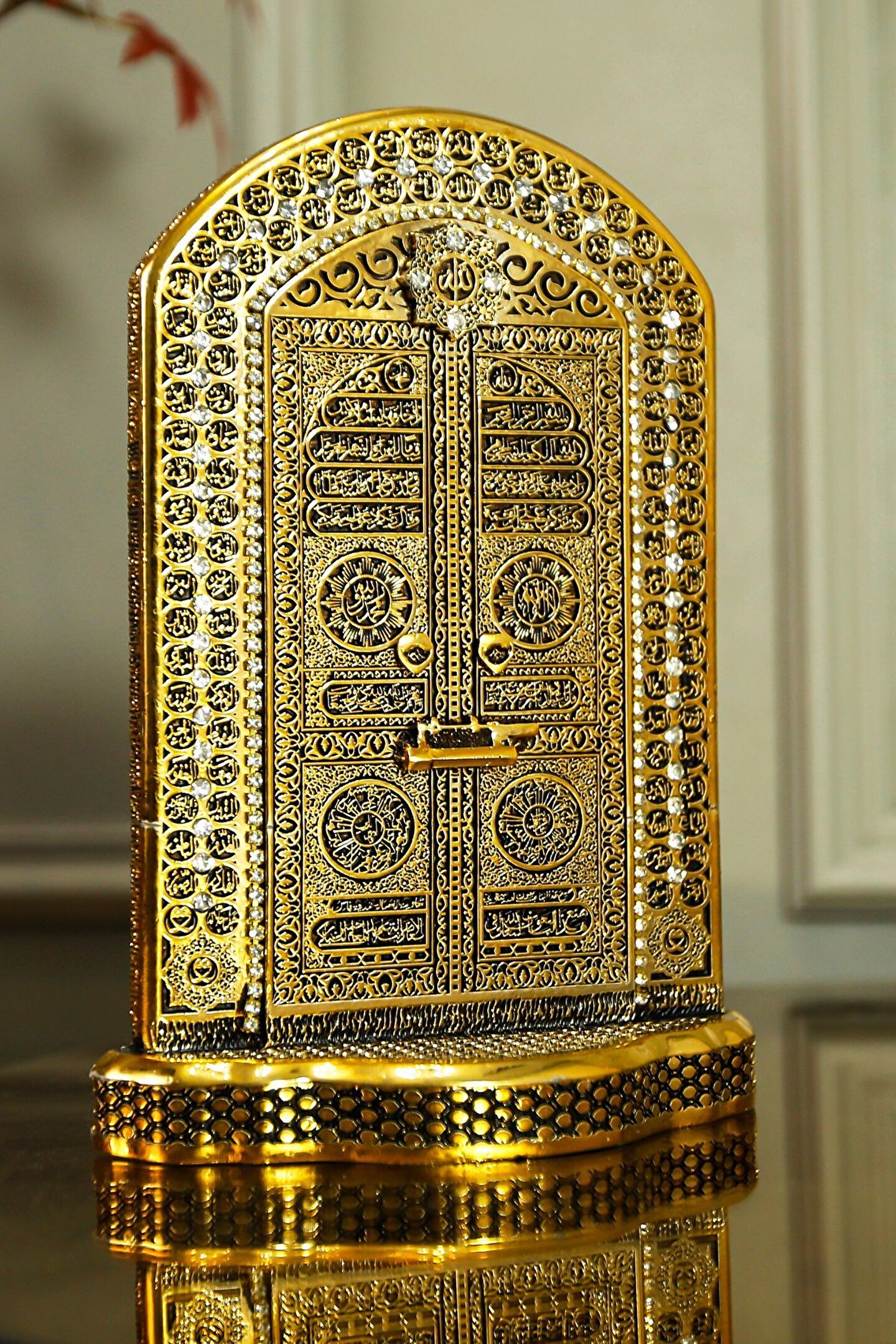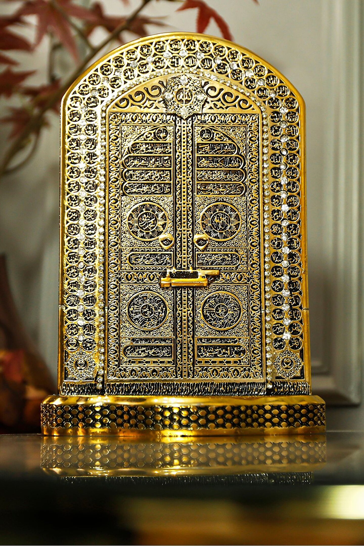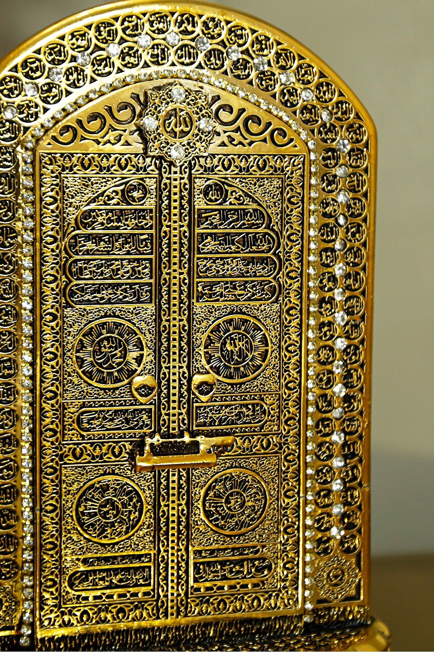 Kendiniz ve sevdikleriniz için tercih edebileceğiniz ve altın rengi ile sizlerin beğenisine sunulan bu özel ürünümüz, Kabe Kapısı motifi üzerinde Ayetel Kürsi işlemesinden oluşan eşsiz parçayı içeriyor.