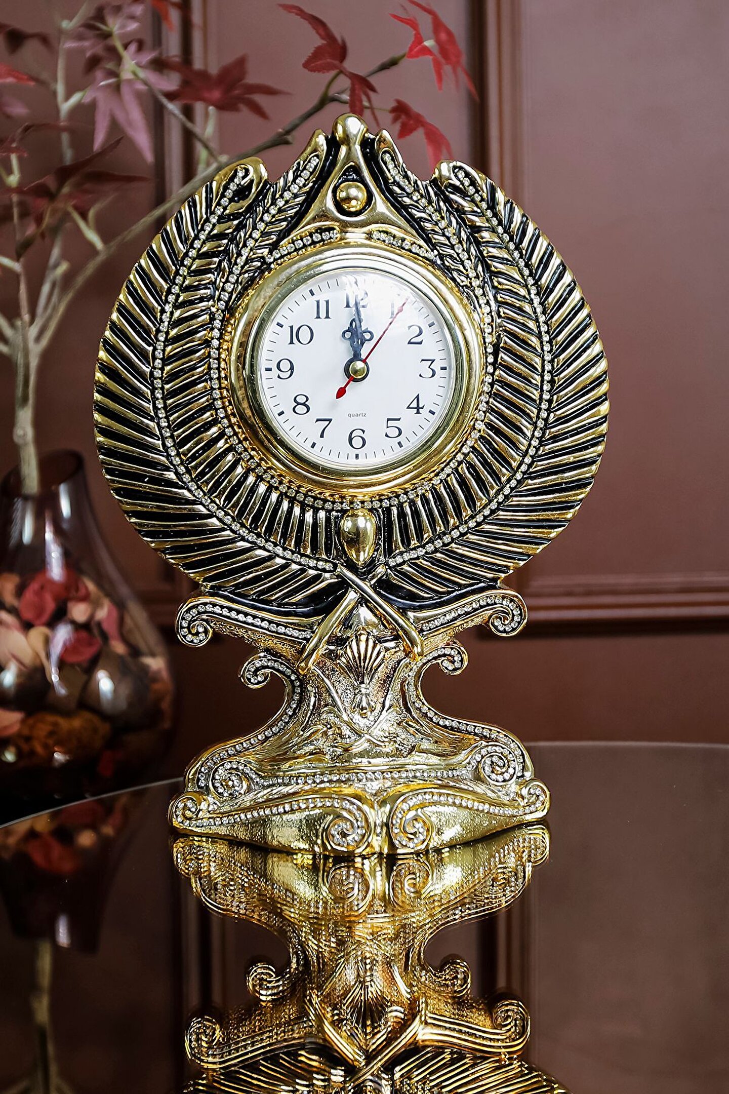Zamanın Bereketi : Başak Motifli Masa Saati ? Başak, toprakla bütünleşmiş bir simge olarak, bereketin, verimliliğin ve bolluğun temsilcisidir.; Başaklar hasat zamanını simgelerken, aynı zamanda emeğin ve çalışmanın güzelliklerini hatırlatır.; Başak motifleri, yaşam alanınıza sadece görsel bir estetik katmakla kalmaz, aynı zamanda evinizi ve işyerinizi bereket enerjisiyle doldurur.; Bu zarif masa saati, başak motifleriyle bezenmiş estetik bir şölen sunarken, aynı zamanda bereketin ve bolluğun sembolü olan başağın derin anlamlarını taşıyor.; Aynı zamanda her anın kıymetini bilmeyi, çabaların meyvesini toplamayı ve bereketle dolu bir yaşamı temsil ediyor.; Her bakışta size bereket ve huzur hissi katacak bu özel saat, zamanı izlerken aynı zamanda yaşamınıza anlam katmayı hedefliyor.; Tüm bu sebeplerle; saatimiz evine veya ofisine zarafet katmak isteyen ve vakti değerli olan takipçilerimize göre.; ?