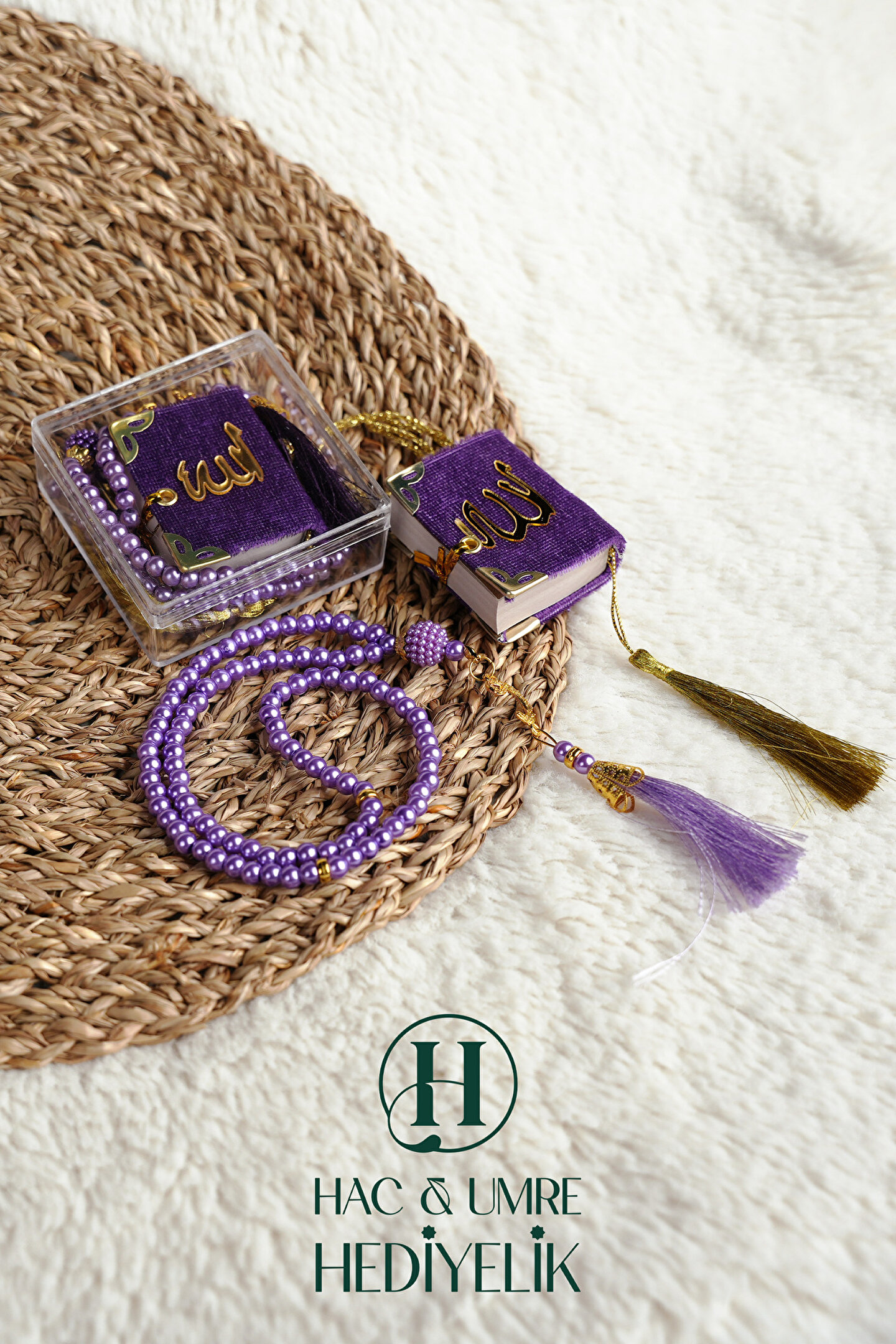 Hac Umre Hediyelik Mikro Kuran ve 99 lu Tesbih Seti | Mevlüt Hac Umre Hediyelik Davet Bebek Mevlidi Hediyesi | 10 Set