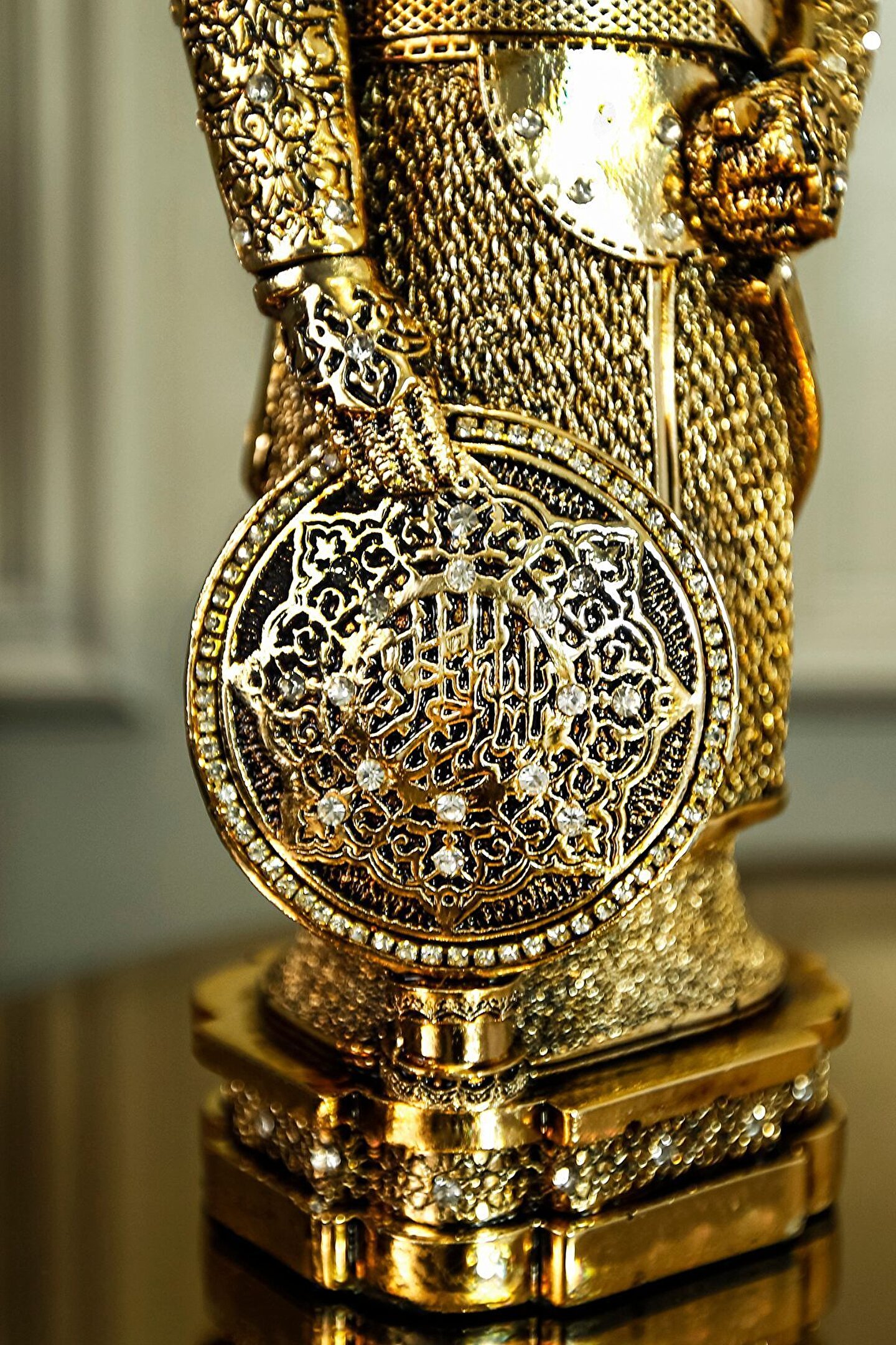 Ihlas suresi işlemeli ertuğrul zırh dekoratif lüks hediye ofis dekoru kendiniz ve sevdikleriniz için tercih edebileceğiniz ve altın rengi ile sizlerin beğenisine sunulan bu özel ürünümüz, ihlas suresi işlemesi ile; Kendiniz ve sevdikleriniz için tercih edebileceğiniz ve gümüş rengi ile sizlerin beğenisine sunulan bu özel ürünümüz, ihlas suresi işlemesi ile; tarihi ertuğrul zırhı kamuflajından oluşan eşsiz parçayı içeriyor.; Osmanlı döneminde askeri zırhlar, savaşçıların hayati organlarını korumak, dayanıklılıklarını artırmak ve düşman saldırılarına karşı savunma sağlamak amacıyla kullanılmıştır.; Zırhlar genellikle özel ustalar tarafından el yapımı olarak üretilir ve savaşçının statüsüne, kullanımına ve savaş stratejilerine göre özelleştirilirdi.; ? eserimiz 1. Kalite sert polyester malzemeden yapılmış olup özenli el işçiliği ile boyanmıştır.; Orijinal ürünümüz; hafif malzemeden yapılmış, ithal, 2.Kalite ve iptidai ürünler ile kıyaslanmaması gerekir En güzel hediye seçeneklerinden biri olan ürünümüz, sizlerin ve sevdiklerinizin mekanlarına zarafet katarken bereketin simgesi olacaktır.