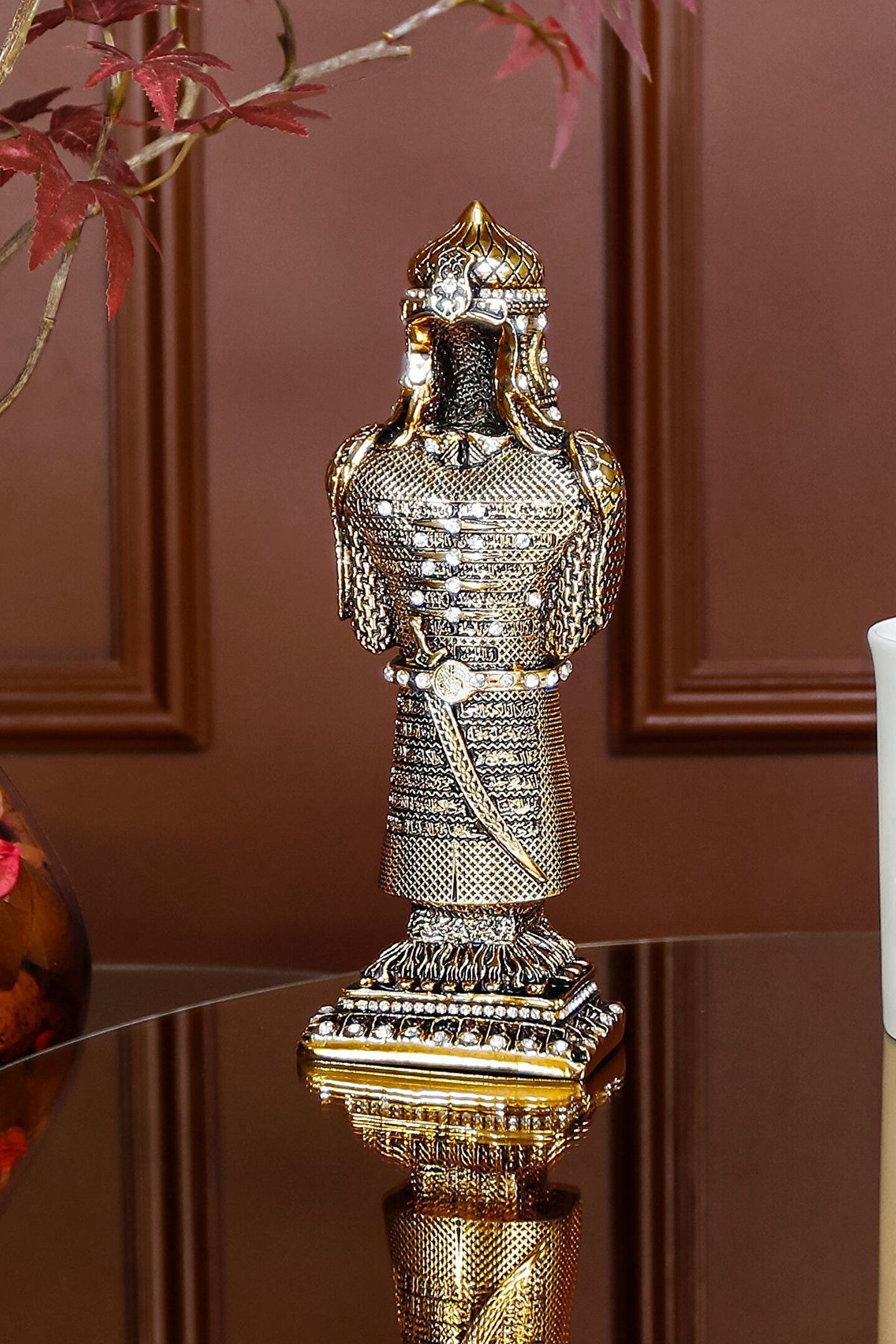 Zarafet ve İhtişam |Osmanlı Askeri Zırh Biblo ? Osmanlı döneminde askeri zırhlar, savaşçıların hayati organlarını korumak, dayanıklılıklarını artırmak ve düşman saldırılarına karşı savunma sağlamak amacıyla kullanılmıştır; Zırhlar genellikle özel ustalar tarafından el yapımı olarak üretilir ve savaşçının statüsüne, kullanımına ve savaş stratejilerine göre özelleştirilirdi; ? Osmanlı askeri zırhları genellikle dökme demir, çelik ve özel işlenmiş metal alaşımları kullanılarak yapılmıştır; Zırhlar, muazzam bir ustalıkla tasarlanmış ve süslenmiş, Osmanlı İmparatorluğu'nun zengin sanat geleneğini yansıtan detaylı desenler ve kabartmalarla süslenmiştir; Bu zırhlar, Osmanlı askeri gücünün yanı sıra imparatorluğun sanatsal ve kültürel mirasını da temsil eder; ?? Detaylı zırh tasarımımız, o dönemin askeri zanaatının bir şaheseri olarak evinize geleneksel bir zarafet katarken, aynı zamanda bir tarih dersi sunar; Bu biblo, koleksiyonerler için eşsiz bir parça olmanın yanı sıra, ev / ofis dekorasyonu için ve hediyelik olarak mükemmel bir seçenektir; ? Hemen sipariş için ürün kodu: CN 53 ? Ürün Özellikleri: Orijinal Tasarım El Yapımı ve Yüksek Kaliteli Metalize Sert Polyester Malzeme Altın Kaplama 7,5x21 cm 510 gr El İşçiliği ? Kullanım Alanları: Yaşam alanlarına zarafet katmak için, Manevi bir hediye olarak, Dekoratif süs olarak, Anneye, Babaya, Eşe Hediye olarak, Yıldönümü, Doğum Günü, Terfi, Ev ve Ofis Hediyesi Olarak, Bereketin simgesi olması için, Maneviyatı hatırlatması için, Başarı ve sanatsal üretime ilham olması için, Kurumsal hediye ve diğer alanlarda kullanılabilir;