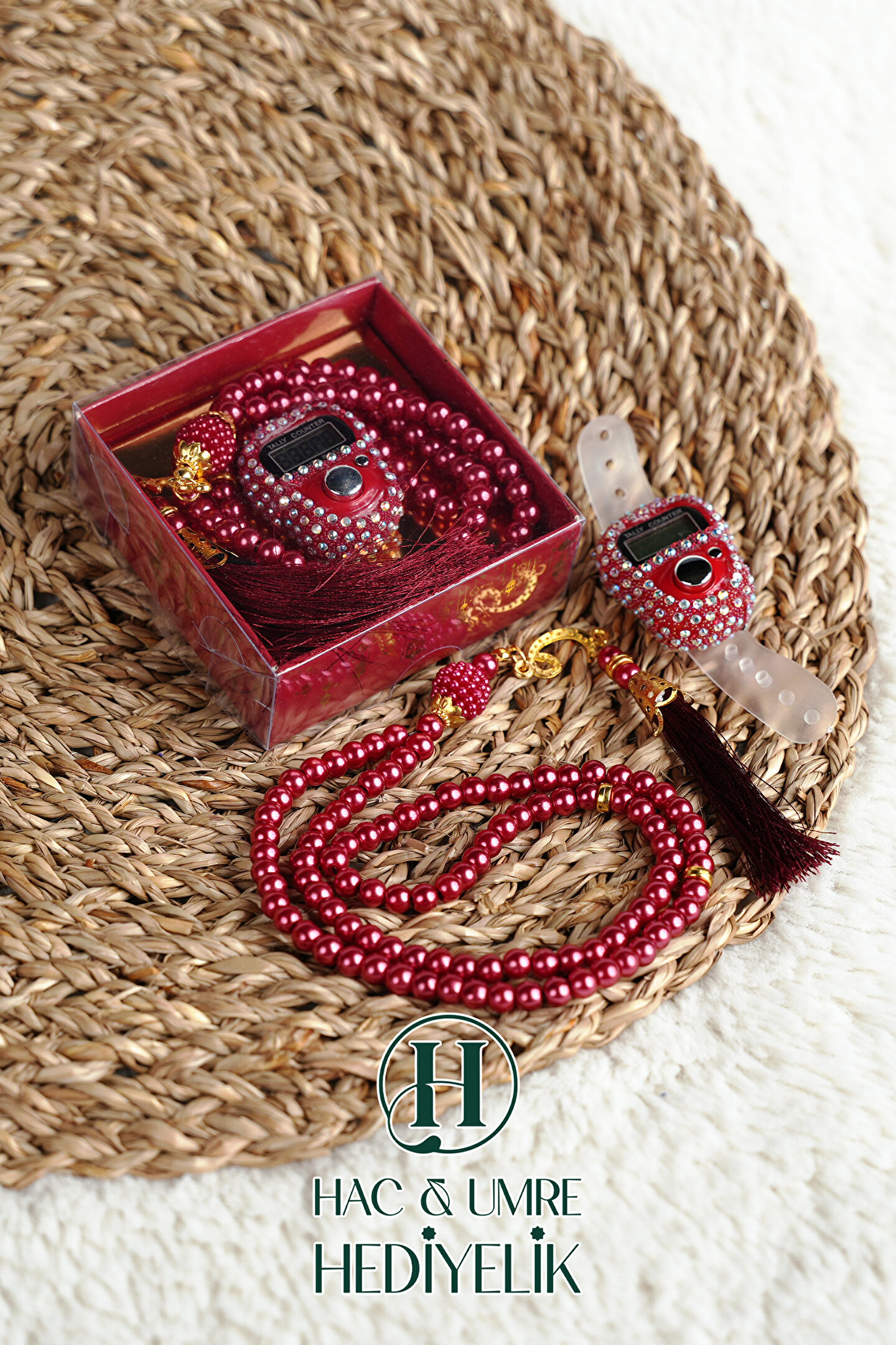 Hac Umre Hediyelik Taşlı Zikirmatik ve İnci Tesbih Seti | Mevlüd Hac Umre Davet Organizasyon Hediyesi | 10 Adet Set