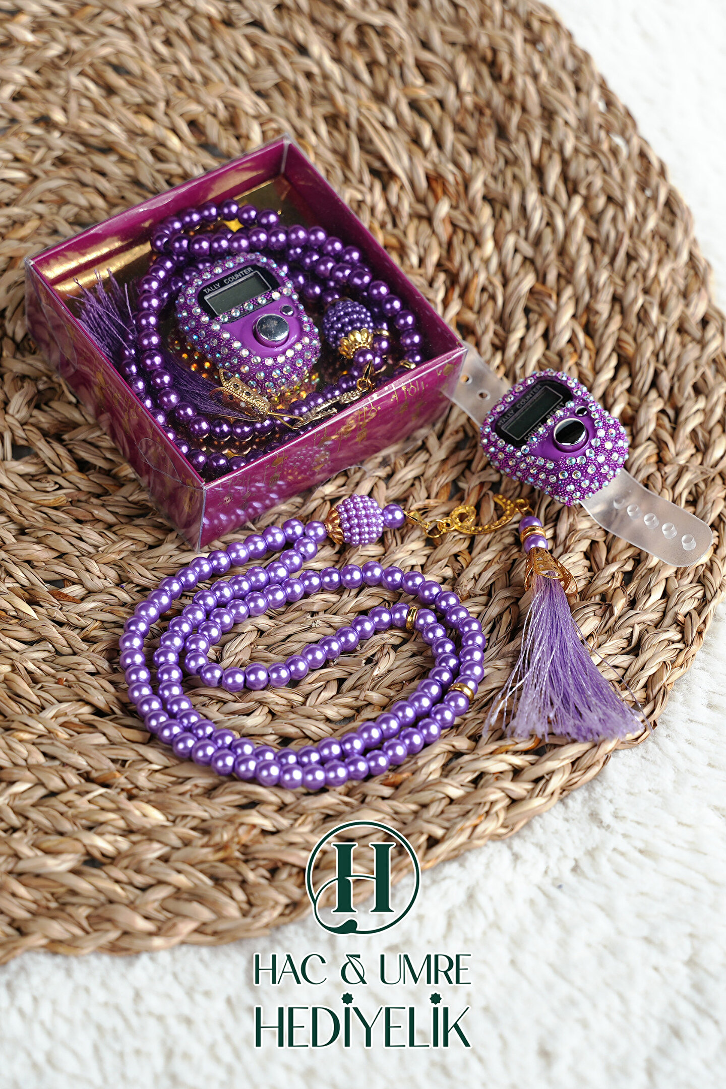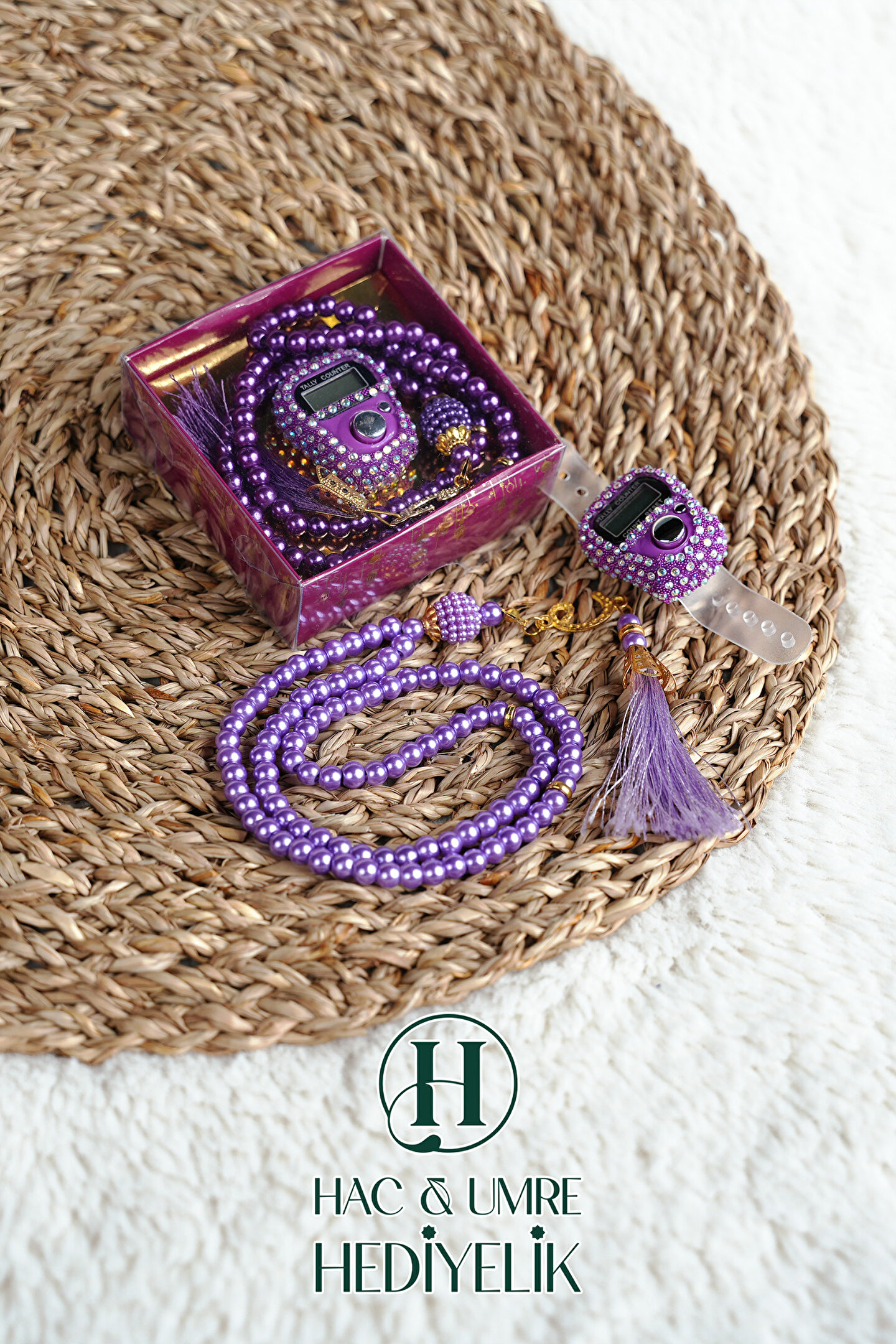 Hac Umre Hediyelik Taşlı Zikirmatik ve İnci Tesbih Seti | Mevlüd Hac Umre Davet Organizasyon Hediyesi | 10 Adet Set