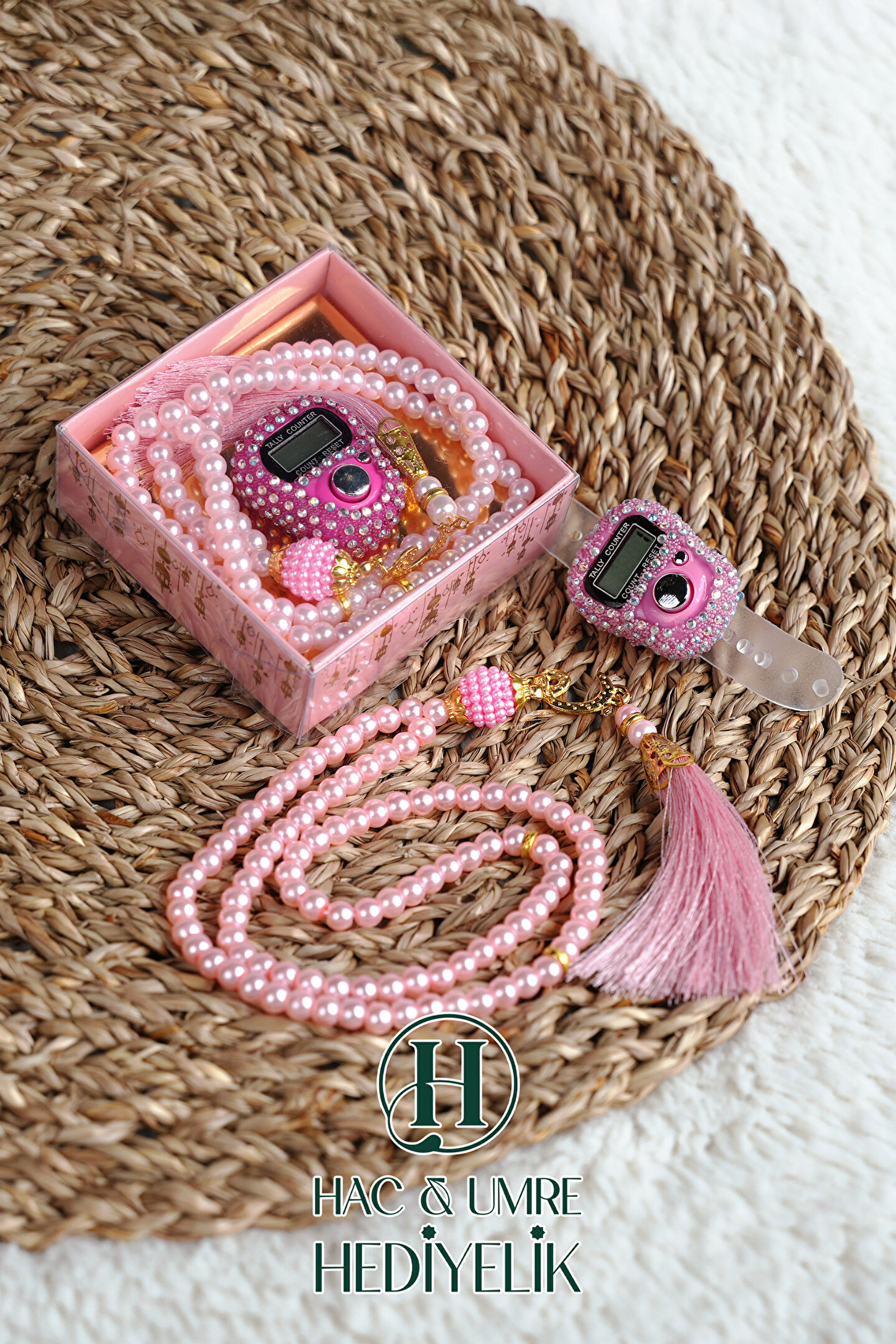 Hac Umre Hediyelik Taşlı Zikirmatik ve İnci Tesbih Seti | Mevlüd Hac Umre Davet Organizasyon Hediyesi | 10 Adet Set