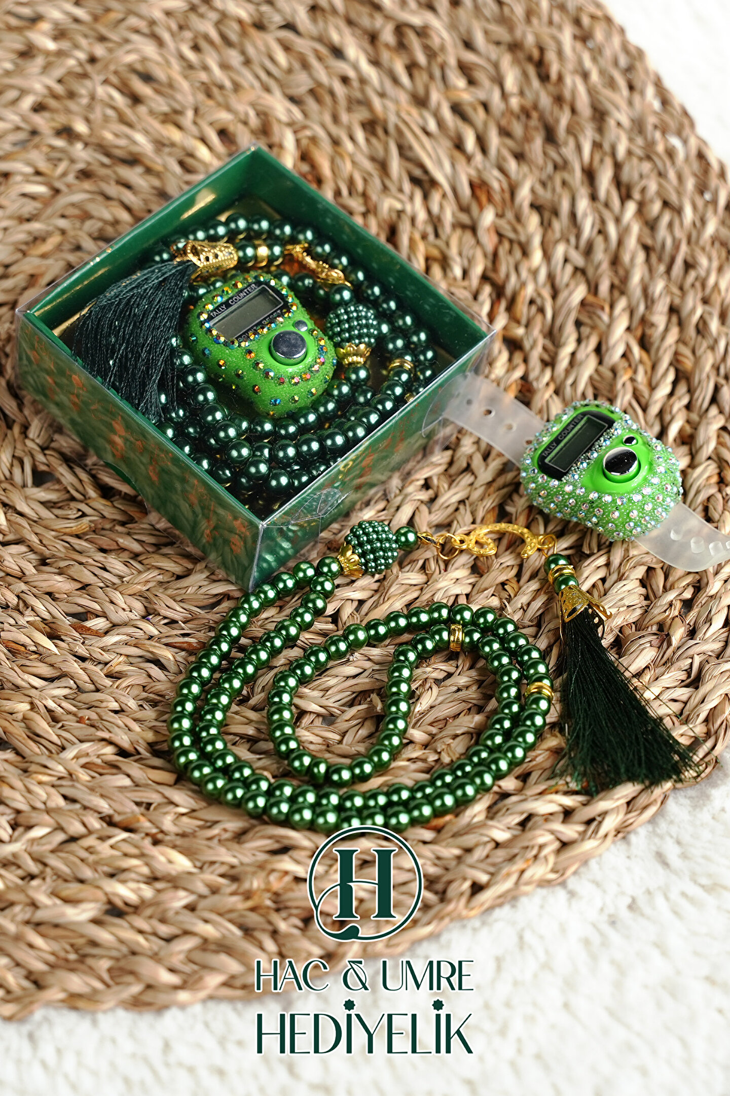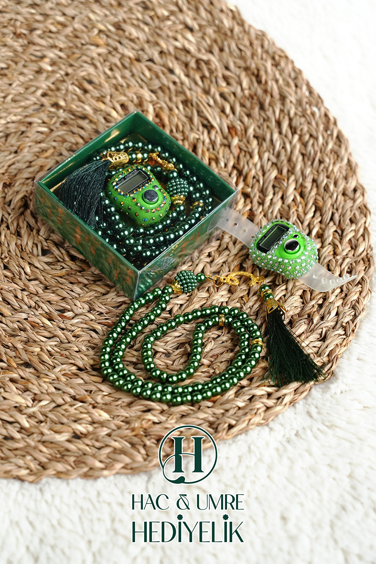 Hac Umre Hediyelik Taşlı Zikirmatik ve İnci Tesbih Seti | Mevlüd Hac Umre Davet Organizasyon Hediyesi | 10 Adet Set