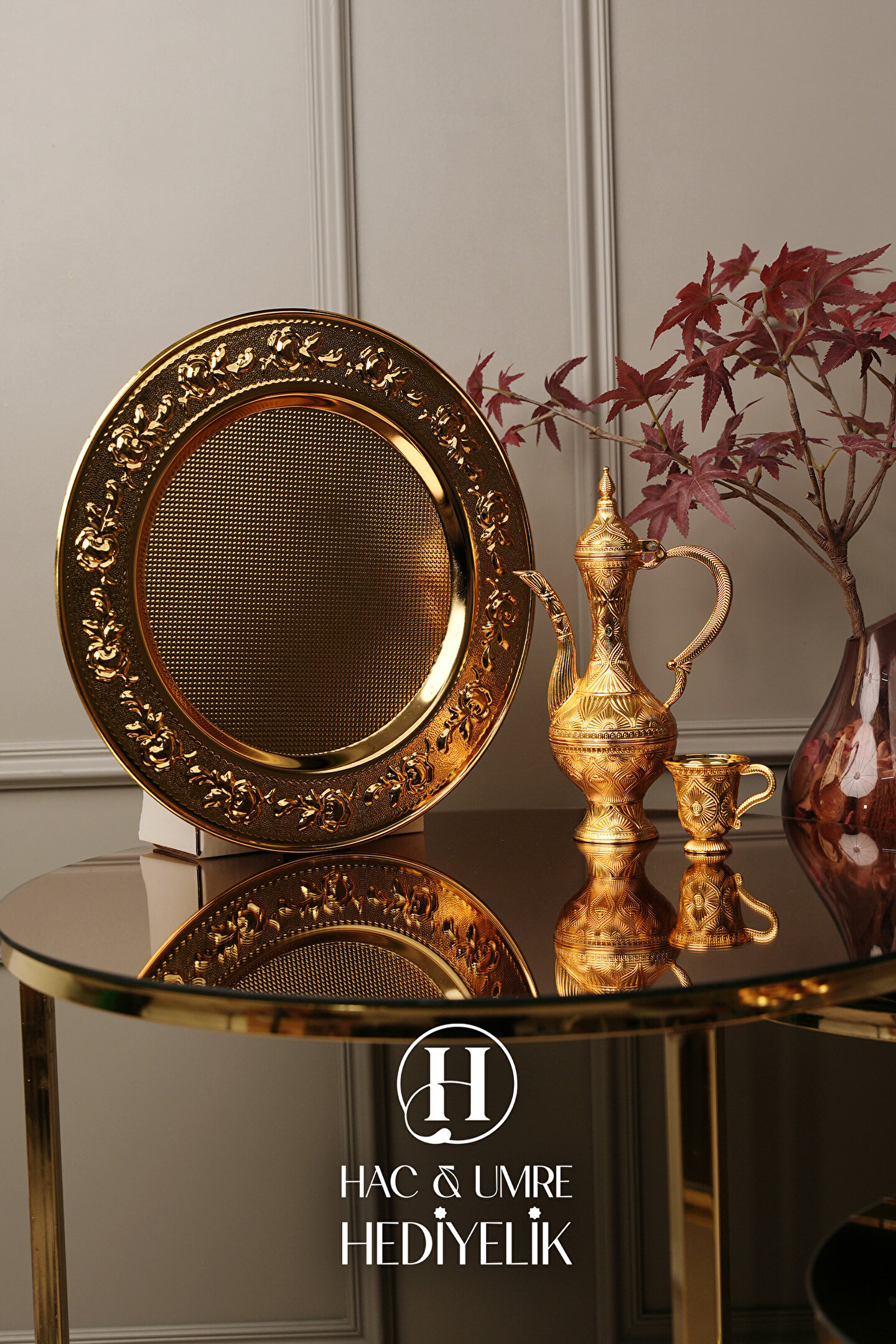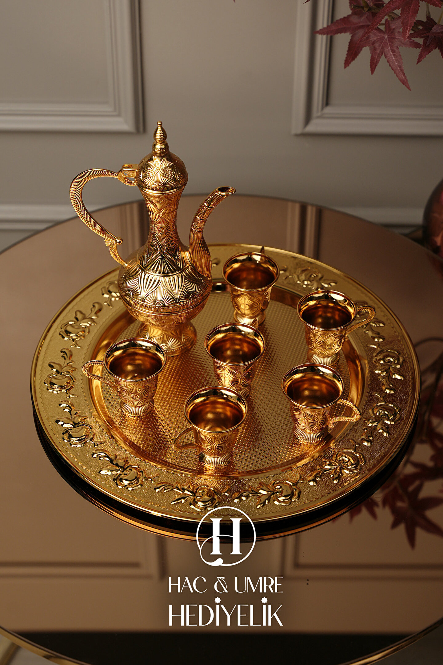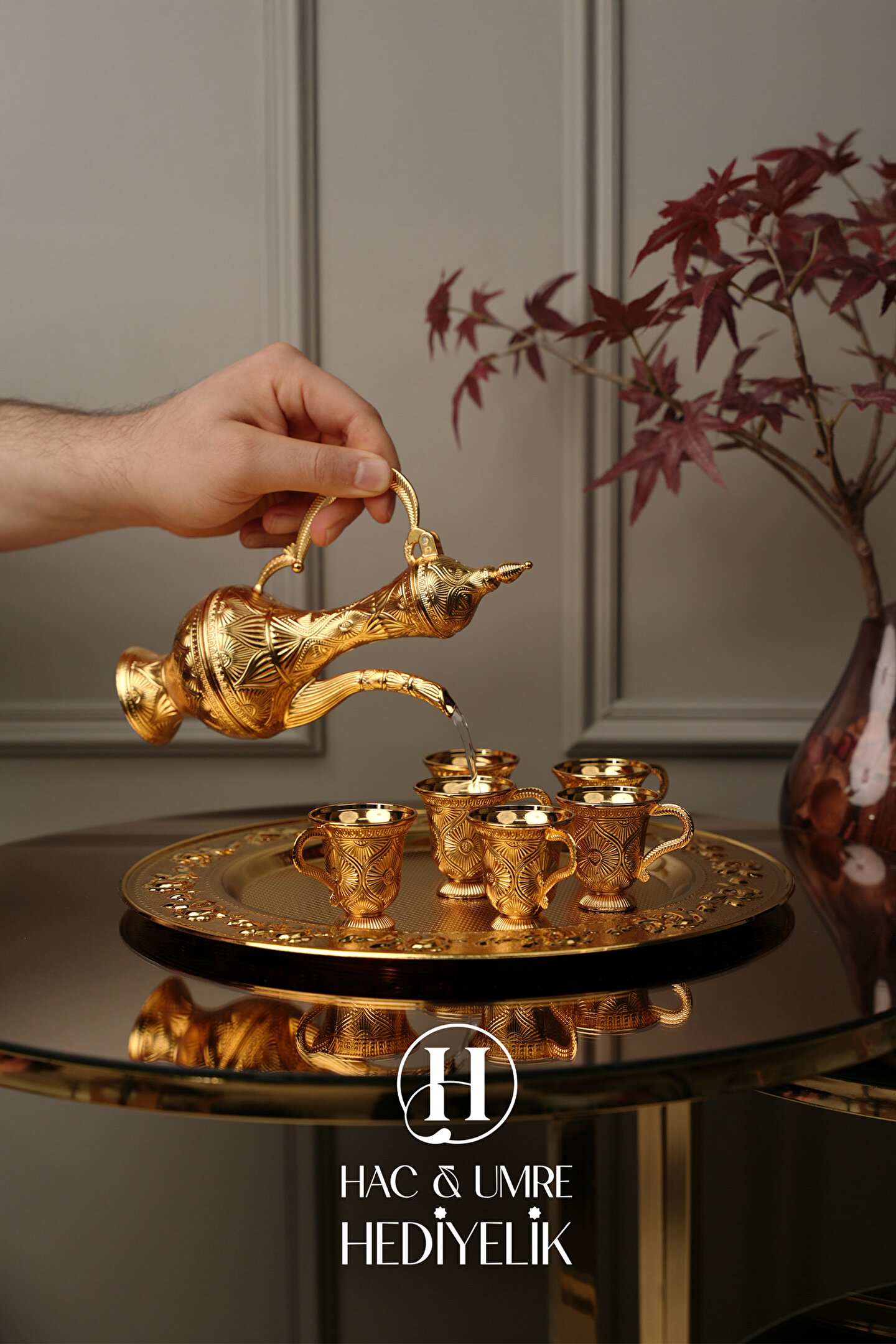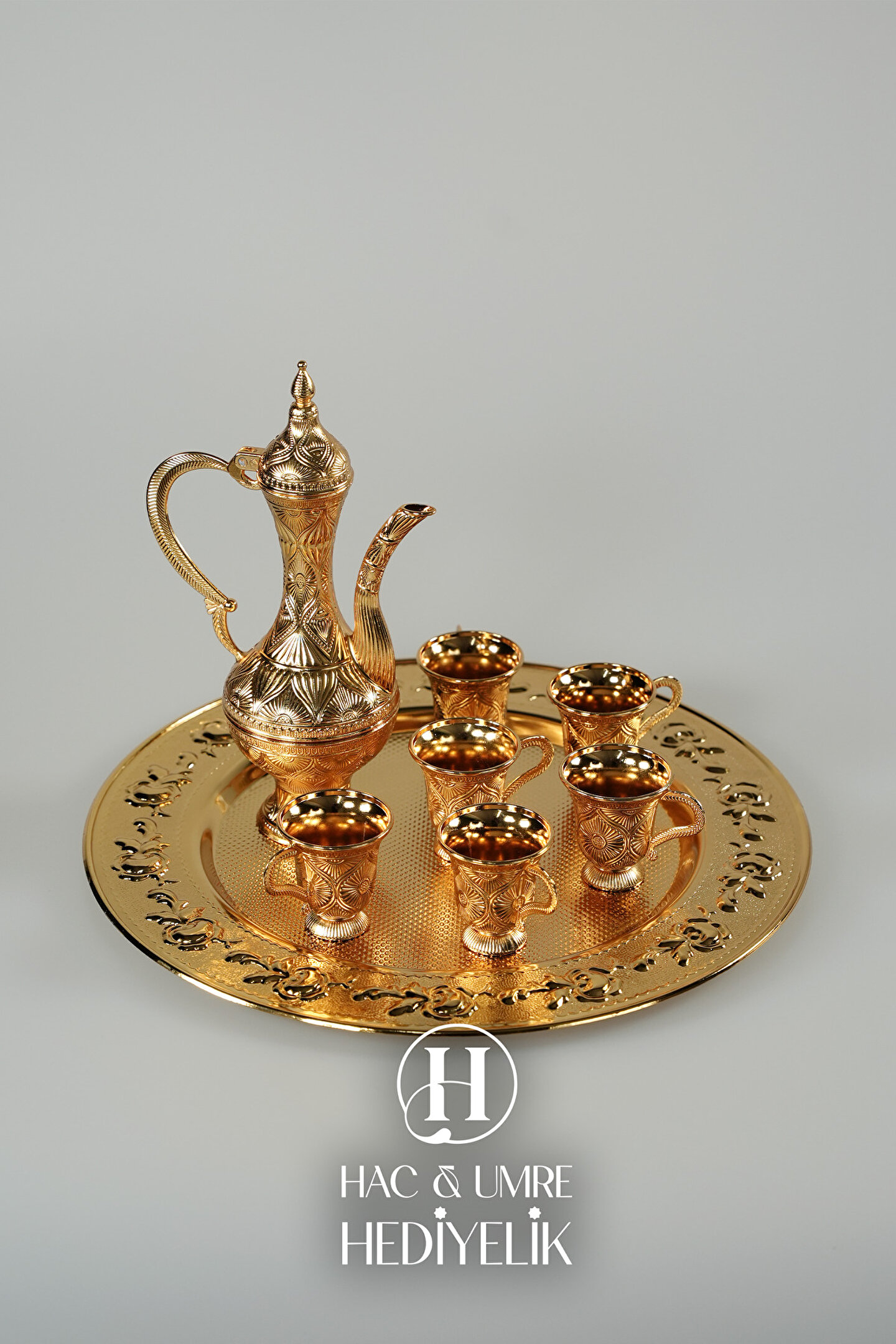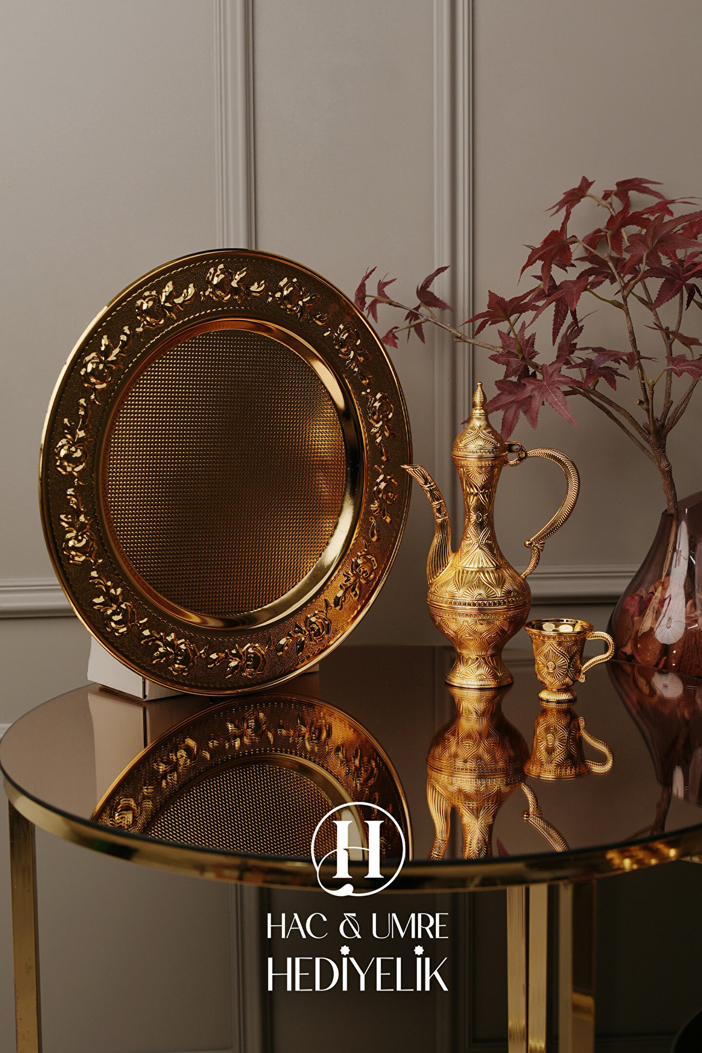 Hac Umre Hediyelik Zemzem Takımı | Gold Zemzem Sunum Seti | Zemzem Tepsisi, İbrik ve Fincan Seti