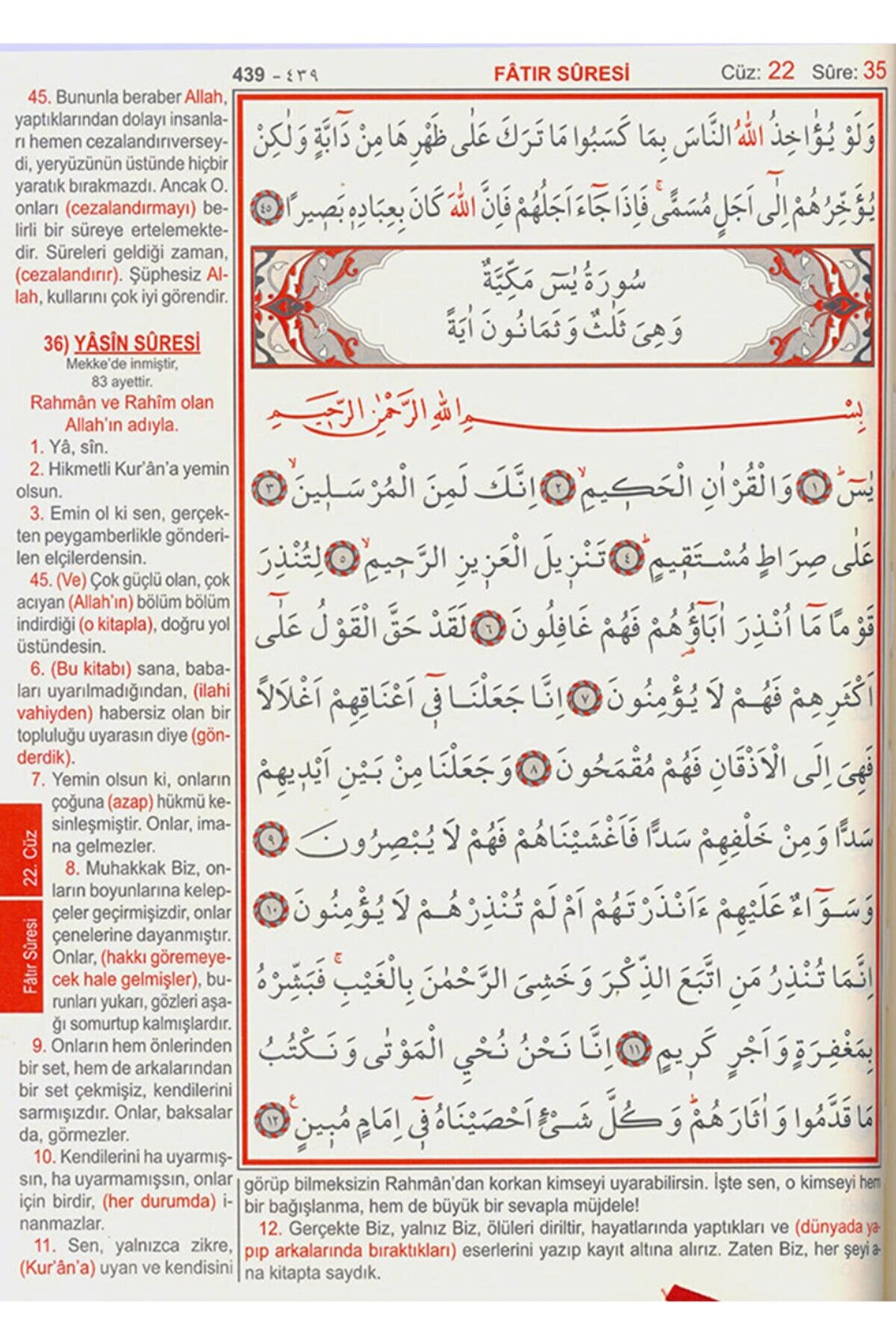 23x34 cm ölçülerinde...; 1. Kalite Şamua Kağıt, Lüks Bez Cilt, 2 Renk Ofset Baskı...; Elmalılı Hamdı Yazır Meali...; ; Dünyada En Kolay Okunan Bilgisayar Hattı ile Hazırlandı...; Seçilen yazı hem estetik hem de harflerin temel karakterlerini koruyan ve kolay okunmalarını sağlayan özel bir hattır...; Harekeler ait oldukları harflerin hemen altında ya da üstünde sıralanmış, özellikle okumaya yeni başlayanlar hareke karışıklıklarına meydan vermeyecek şekilde düzenlenmiştir...; Sayfa üstlerinde kullanılan kılavuzlarda surelerin ve cüzlerin isimleriyle beraber numaraları da verilerek okuyucunun aradığı sure ve cüzü numarasından da rahatlıkla bulabilmeleri amaçlanmıştır...; Her bir sure başlığında, surenin adı, nazil olduğu yer ve ayet sayısı, rakam ve yazı ile belirtilerek sure hakkında bir ön bilgi verilmiştir...;