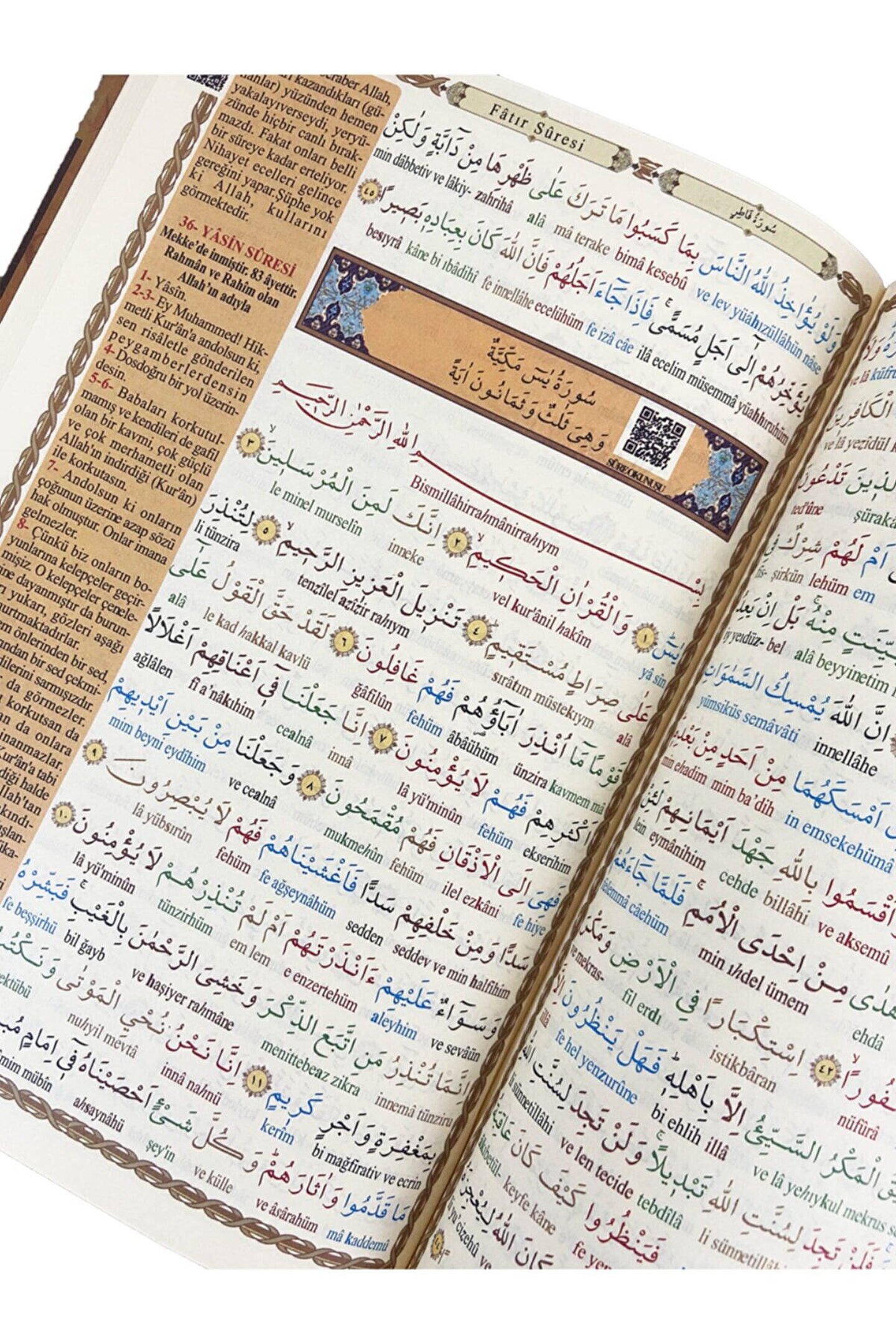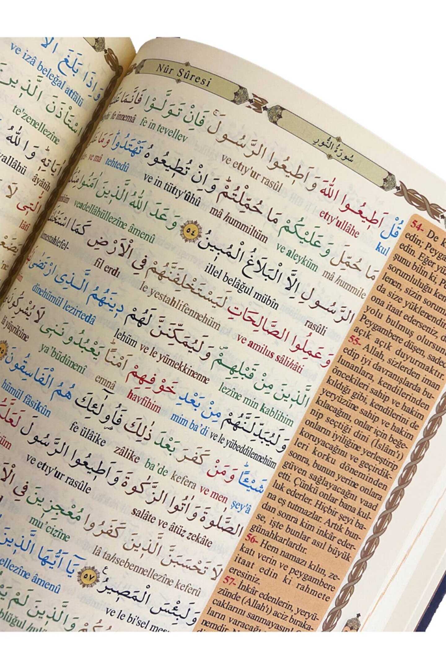 rahle boy kuranı kerim türkçe okunuşlu tecvidli ve mealli ebat: 19 x 28 cm Diyanet işleri başkanlığı mushafları inceleme ve kıraat kurulu'ndan onaylı ve mühürlüdür ; Satır altında renkli türkçe okunuşludur. Bu özelliği okumayı bilmeyen veya yeni öğrenenler için çok faydalıdır. ; Milyonlarca insanın kuranı kerim okumasını öğrendiği hatla yazılmıştır, okuması çok kolay ve bilgisayar hatlıdır ; Kelime kelime renklendirilmeli satır altı türkçe tecvidli okunuşlu kuranı kerim. Tecvitli okunuşu sayesinde kolayca tecvitli okumayı öğrenebilirsiniz ; Baskı kalitesi ve kağıt rengi sayesinde ışık altında veya gün ışığında okurken gözlerinizi yormaz ; Iç kısmı renkli ve 622 sayfa, sert ve dayanıklı kapak ; (qr) karekodludur ve bütün akıllı telefonlarda, cihazlarda karekodu okutarak istediğiniz sayfayı ve ayeti dinleyebilirsiniz ; Şamua kağıt, kaliteli basım kuranı kerim ;