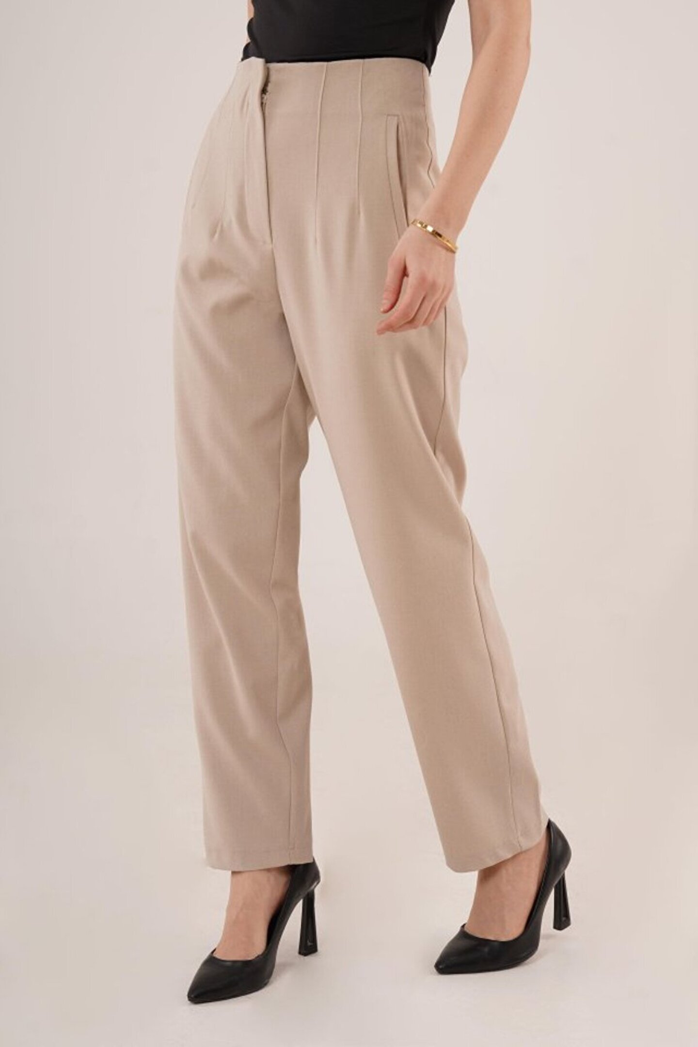 HanZone Çift Pens Detaylı Krem Pantolon