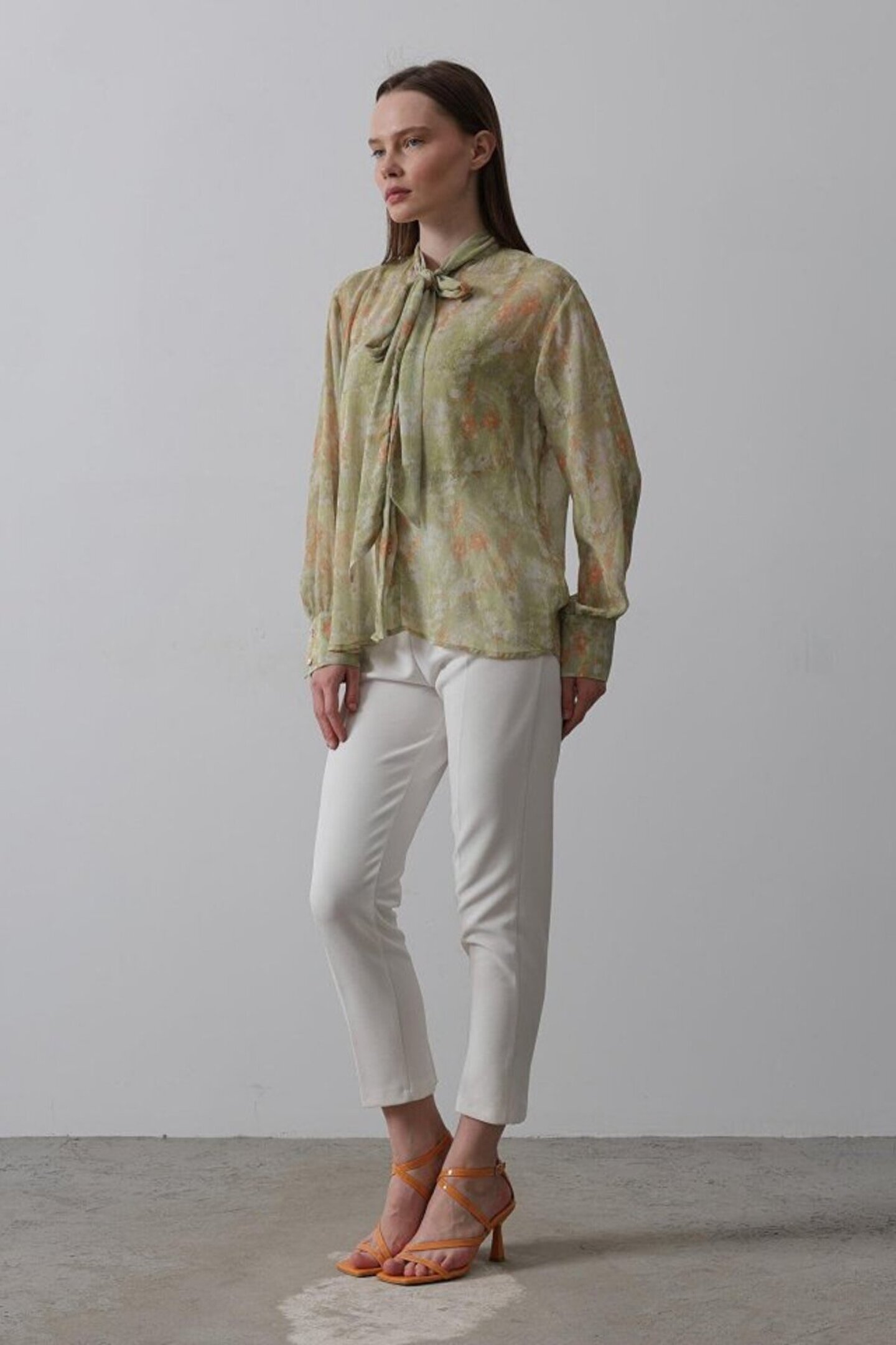 HanZone munn collection Yakası Fularlı Şifon Gömlek - Fıstık Yeşili