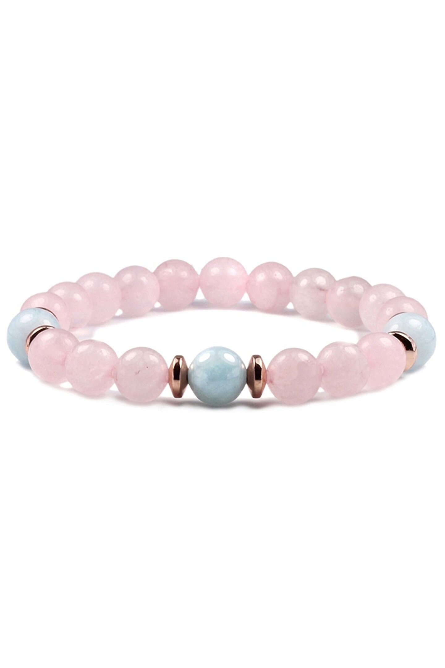 Haremi Akuamarin - Pembe Kuvars Doğal Taş Bileklik 8 Mm