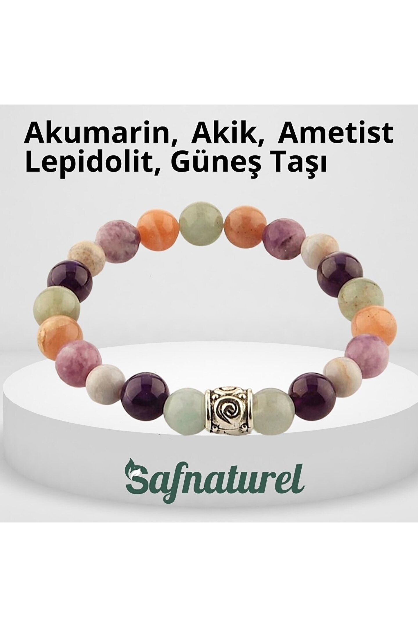 Haremi Akumarin, Akik, Ametist Lepidolit, Güneş Taşı Doğal Taş Bileklik 8 Mm