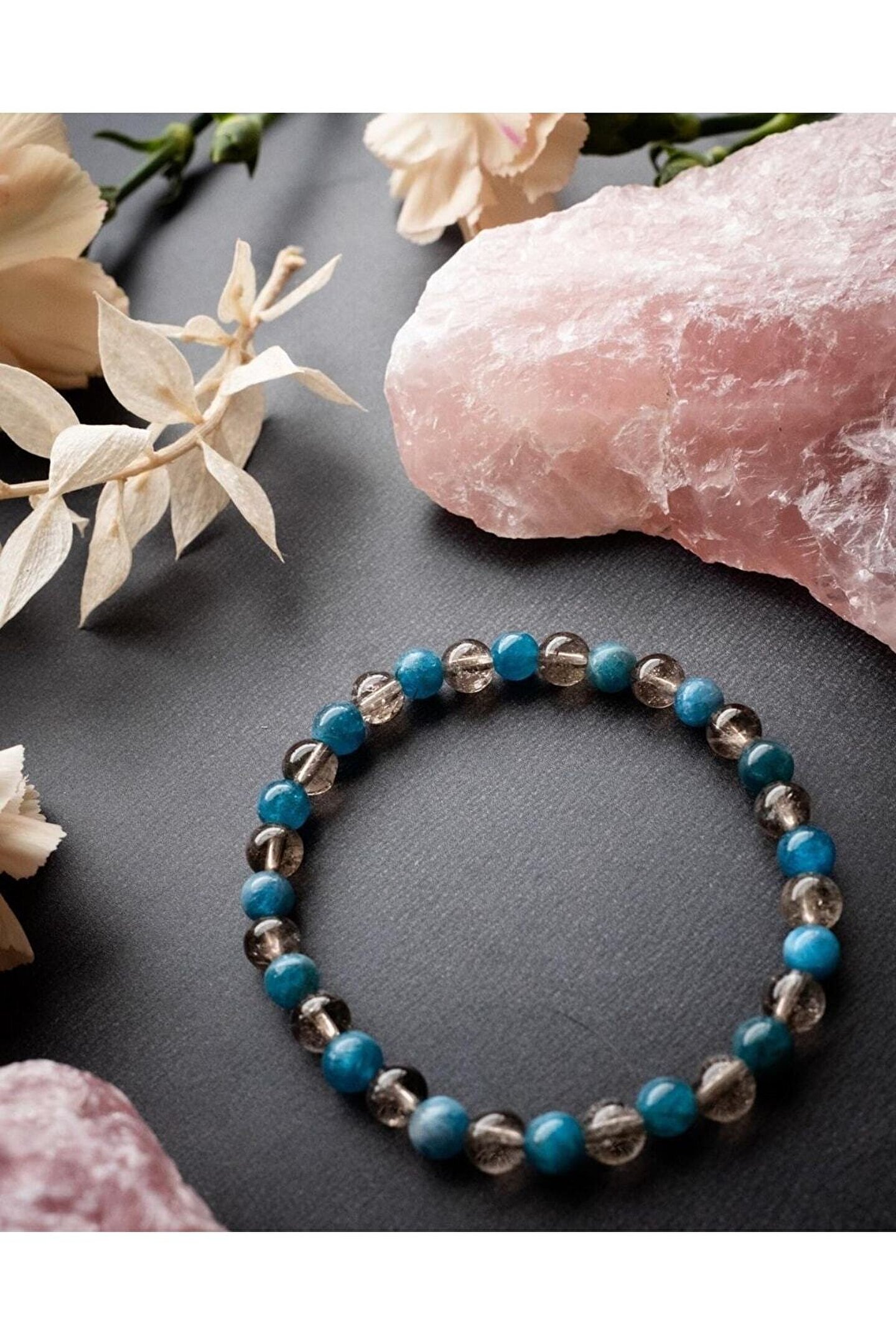 Haremi Apatit ve Dumanlı Kuvars Doğal Taş Bileklik 6 mm