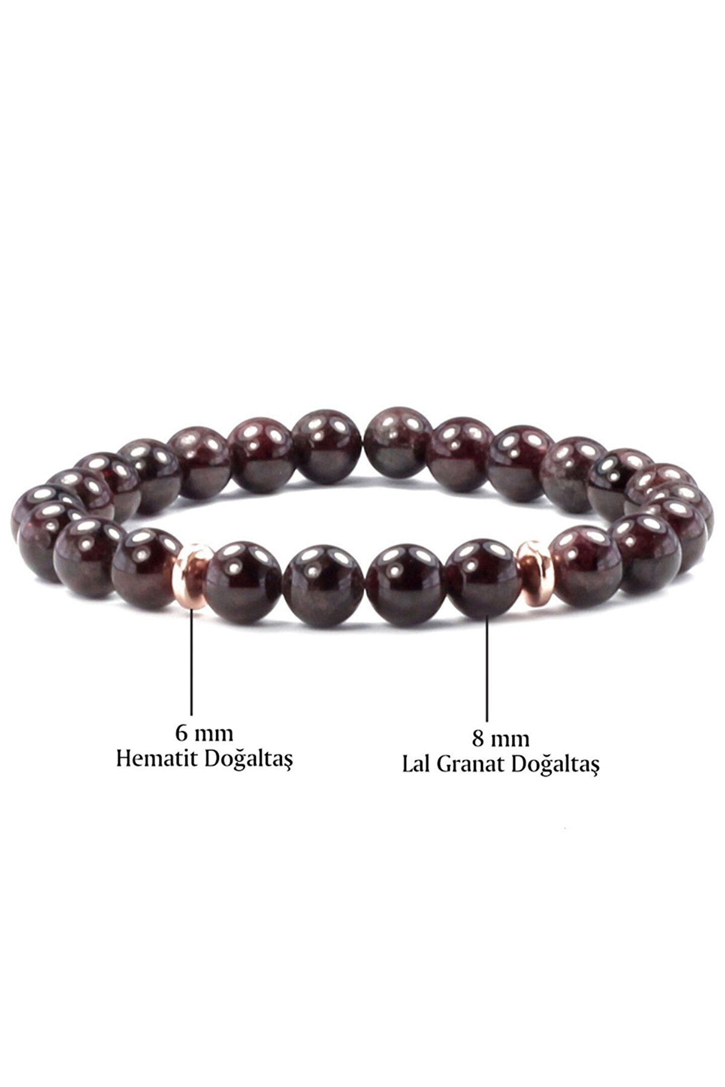 Gençlerin enerjisini ve stilini yansıtan Lal garnet; hematit doğal taş bileklik, günlük kullanım için ideal bir aksesuardır; Doğal taş materyali ile hem şıklığı hem de doğallığı bir arada sunar, her kıyafetle uyum sağlar; 8 mm boyutundaki zarif tasarımı, bileklerinize rahat bir kullanım sağlarken, bileklikteki doğal taşların benzersiz desenleri ile göz alıcı bir görünüm kazandırır;
