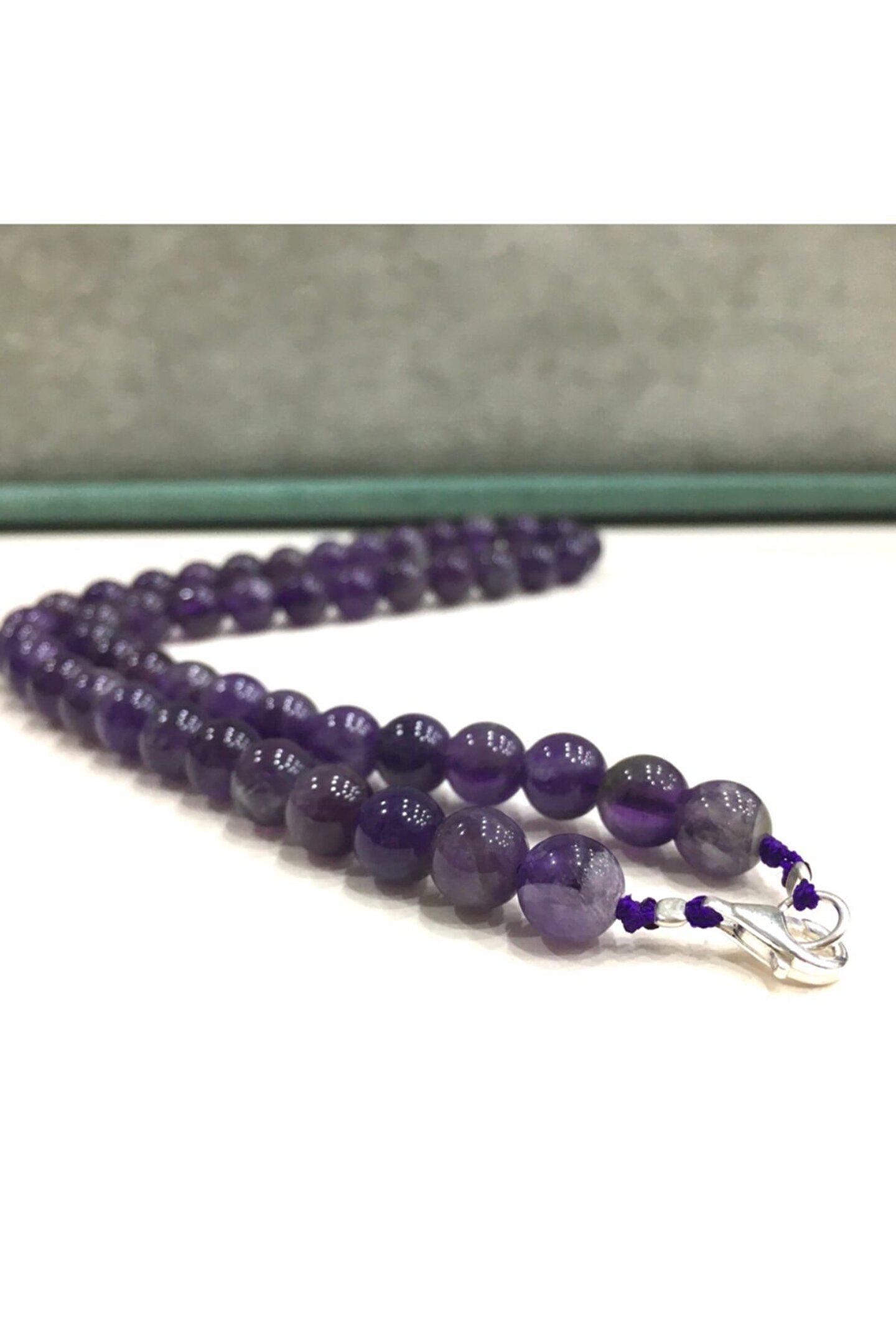 Gümüş malzeme kullanımı, hem şıklığı hem de dayanıklılığı bir arada sunar; Doğal taş detayı, kolyeye otantik ve zarif bir görünüm kazandırır; Ametist taşı, enerjiyi dengelemeye yardımcı olur ve stresi azaltır; Gümüş klips tasarımı, kolyenin kolayca takılmasını ve çıkarılmasını sağlar;