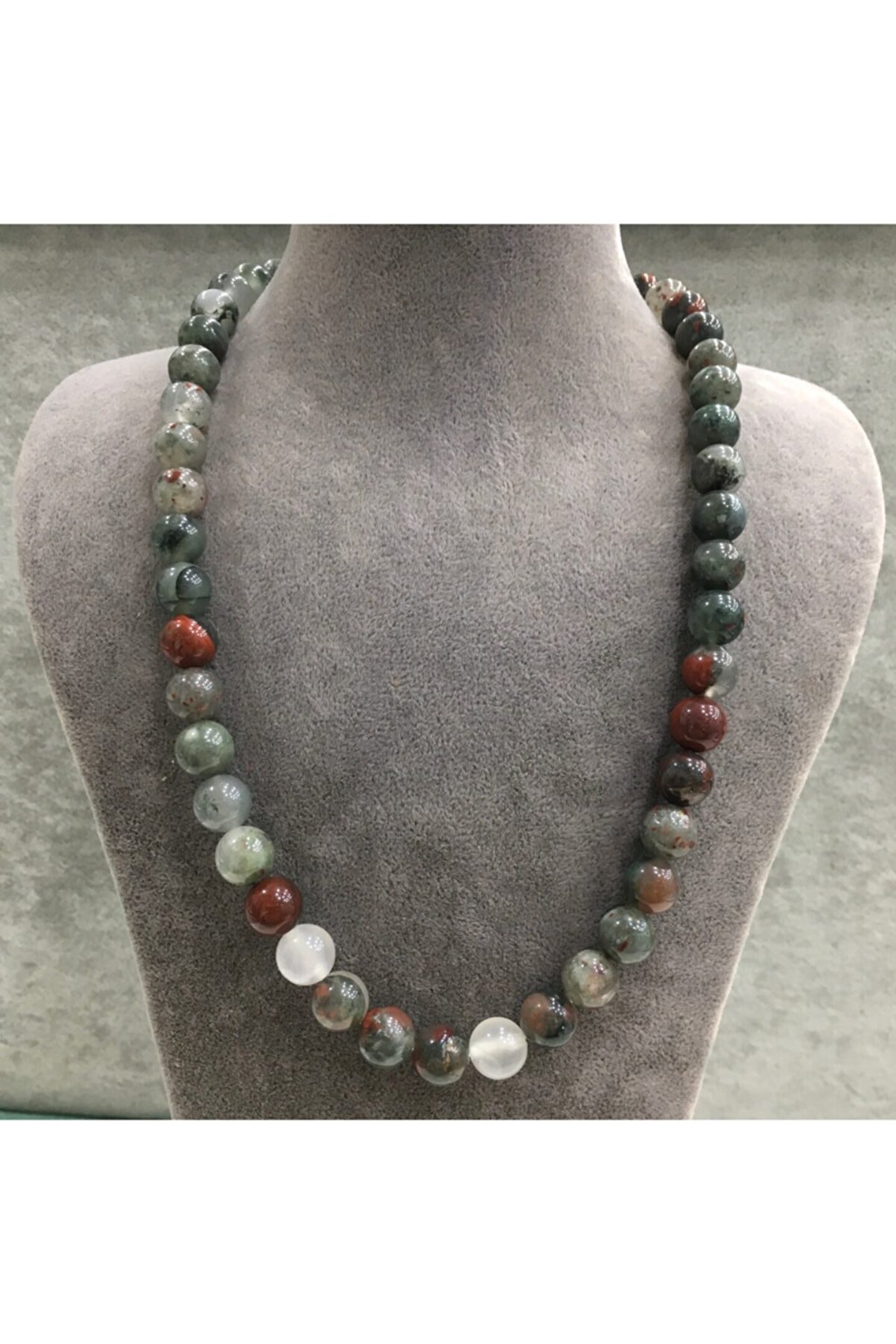 Gümüş malzeme kullanılarak üretilmiş, uzun ömürlü ve kaliteli bir aksesuar deneyimi sunar; Doğal dragon jasper taşı ile tasarlanmış, benzersiz ve şık bir görünüm kazandırır; Klasik ve modern çizgileri bir arada barındıran tasarımıyla her türlü kıyafetle uyum sağlar; Gümüş klips detayı sayesinde kolyenin takılması ve çıkarılması kolaydır, pratik kullanım sunar;