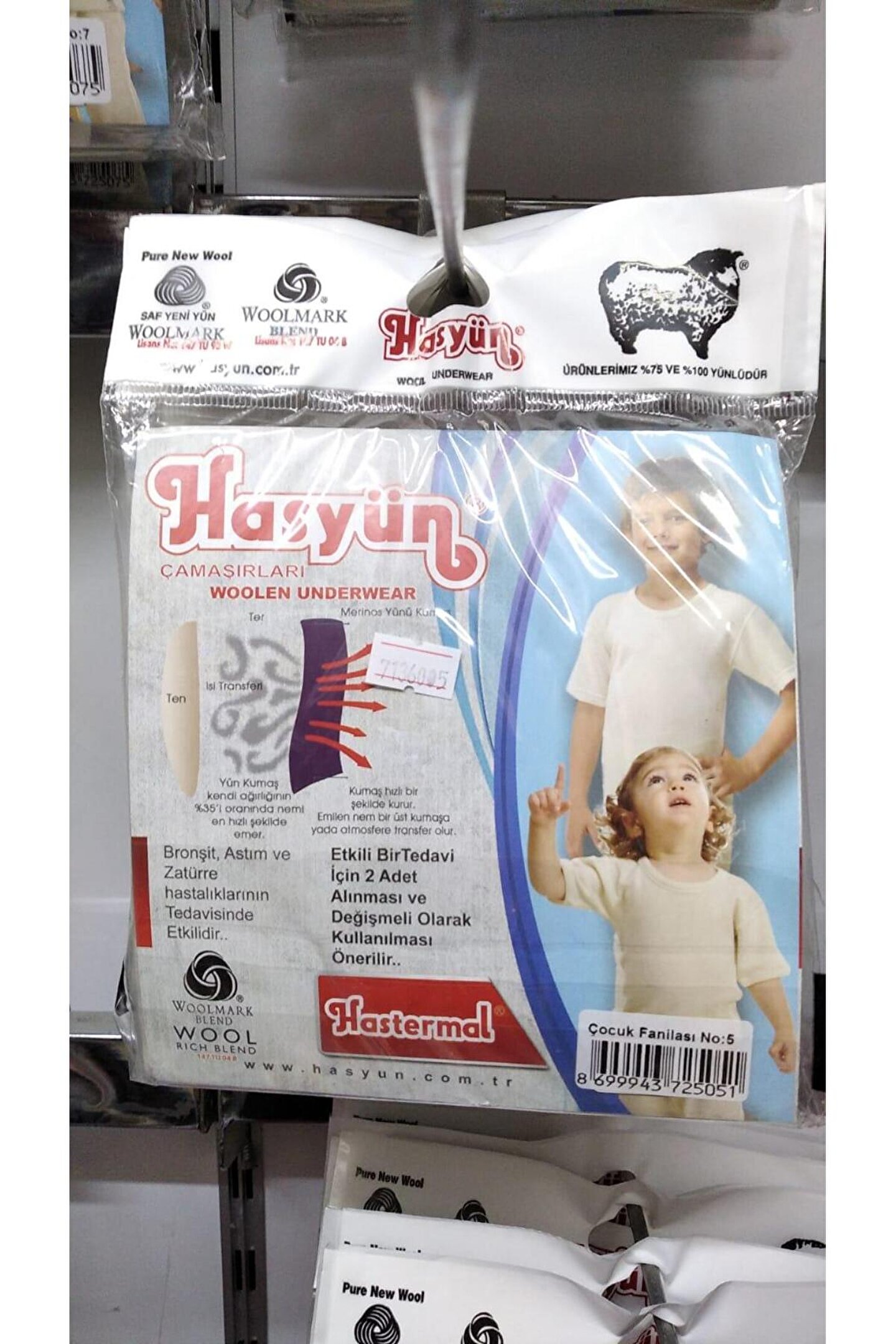 Hasyün Erkek Çocuk İnce Kısa Kol Yün İçlik Fanila Atlet 500EE - 1 Adet Not : Ürün Ünisexdir Kız ve Erkek Çocuk kullanabilir 1 Adet Fanila Gönderilkecektir Kumaş : İNTERLOK ÖRGÜ İÇERİK:%75 Avusturalya Merinos Yünü %25 Akrilik Not: Ürünlerimizi güve yememesi için naftalin konulmuştur.; Kokunun çıkması için önce 1 gün açık havada havalandırıp ondan sonra ılık sudan geçirilmesi önerilmektedir.; Beden:1Yaş-2Yaş-3Yaş-4Yaş-5Yaş-6Yaş-7Yaş-8Yaş-9yaş-10Yaş Renk: Ekru UZUN ÖMÜRLÜ KULLANIM İÇİN ELDE ILIK SUDA ŞAMPUAN İLE YIKANMASINI TAVSİYE EDERİZ.; Maksimum 30 °C’de yıkayınız.; Sererek kurutunuz.; Kurutma makinası kullanmayınız.; Çamaşır suyu vb.; ağartıcı kullanmayınız.; Düşük ısıda ütüleyiniz.; Kuru Temizleme Yapmayın Woolmark Blend Sertifikasına sahiptir.; DİKKAT Tüm müşterilerimiz için hijyen koşullarının çok önemli olduğunu biliyoruz.; Bu sebeple, her türlü korse mayo, sütyen, sütyen takımı, termal içlik,çorap, boxer, külot, string, slip,Atlet ve Fanila modelleri ve benzeri alt ve üst grup hijyenik ürünler ile iç giyim kategorisindeki hiç bir ürünün iadesi veya değişimi yoktur.; Denenmiş veya denenmemiş olmasına bakılmaksızın bu tarz ürünlerin iadesi veya değişimi yapılamadığından renk ve beden seçimine dikkat edilmesi oldukça önemlidir.; Mağazamızdan Alacağınız Tüm Ürünler Tek Kargoyla Gönderilecektir.; Bizi Tercih Ettiğiniz İçin TEŞEKKÜR Ederiz.; Kapbirtane