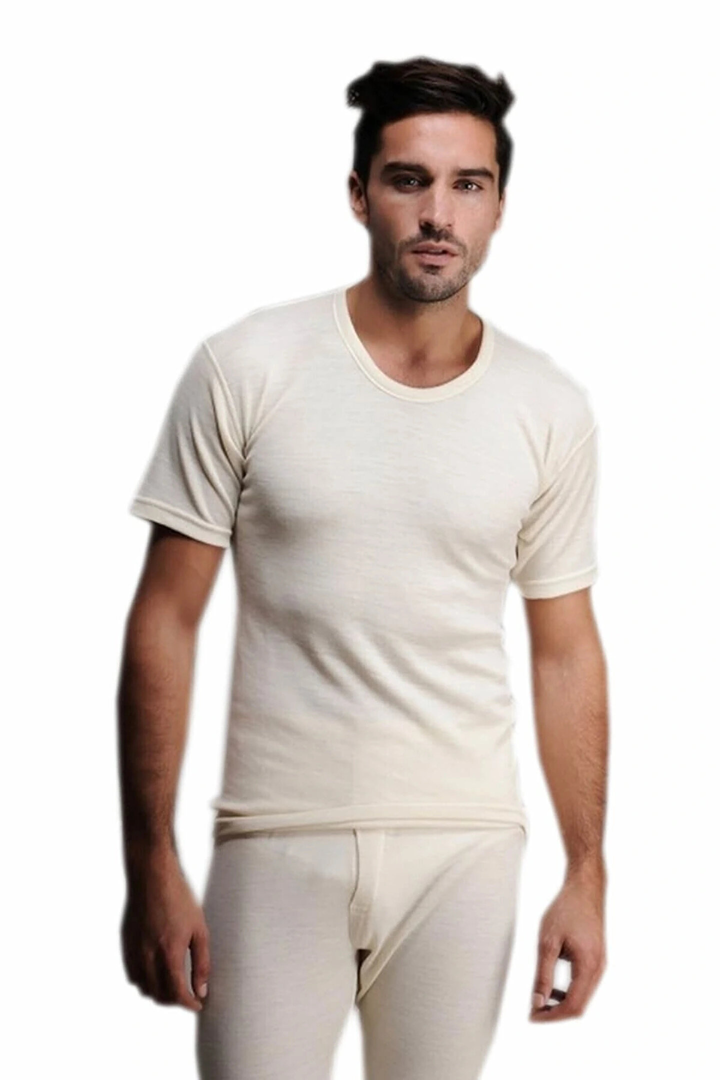 Erkek Krem Erkek Yün Kısa Kol Fanila % 75 Yün 25 Akriliktir