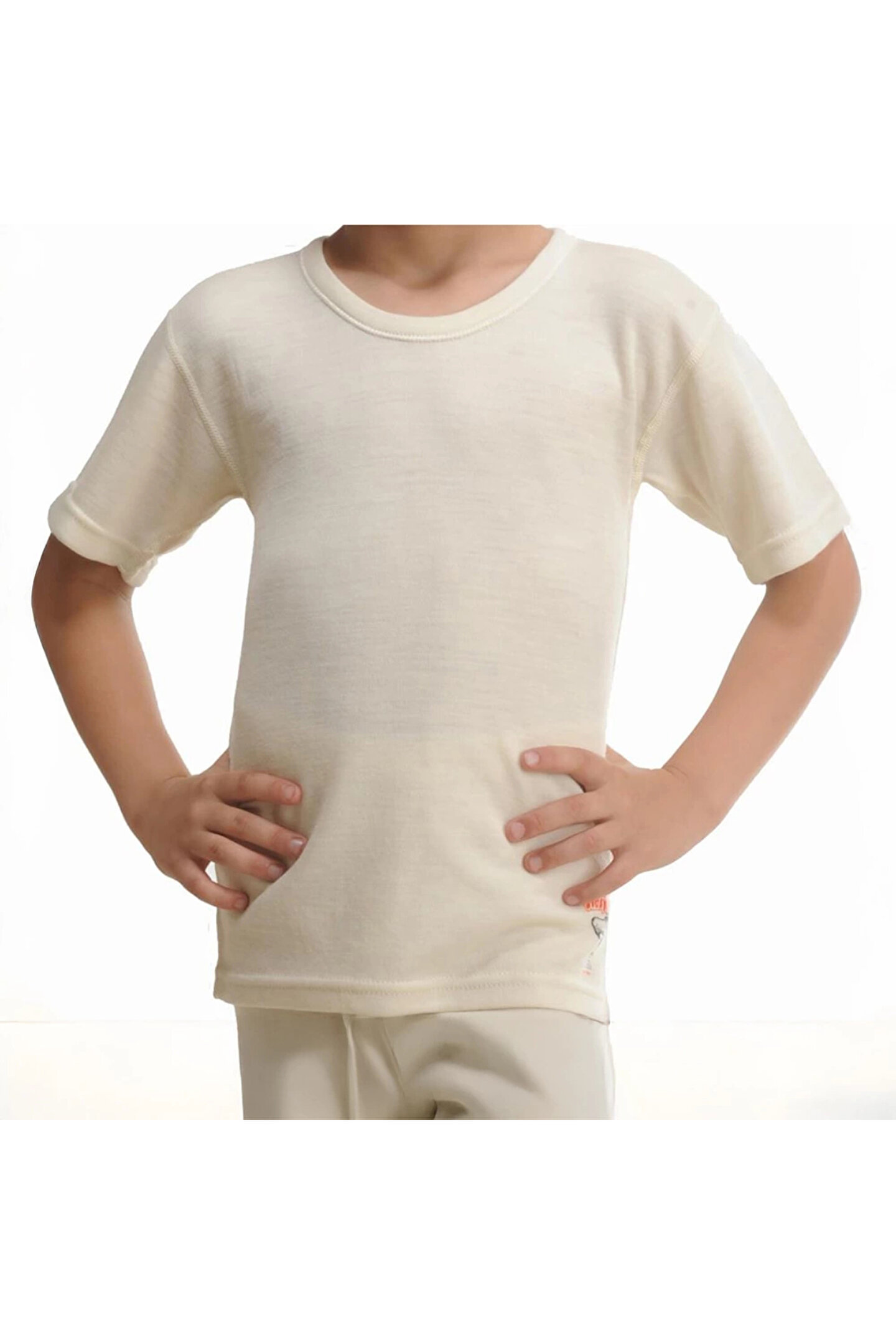 Hasyün Unisex Çocuk Ekru Gerçek Yün Kısa Kollu Fanila