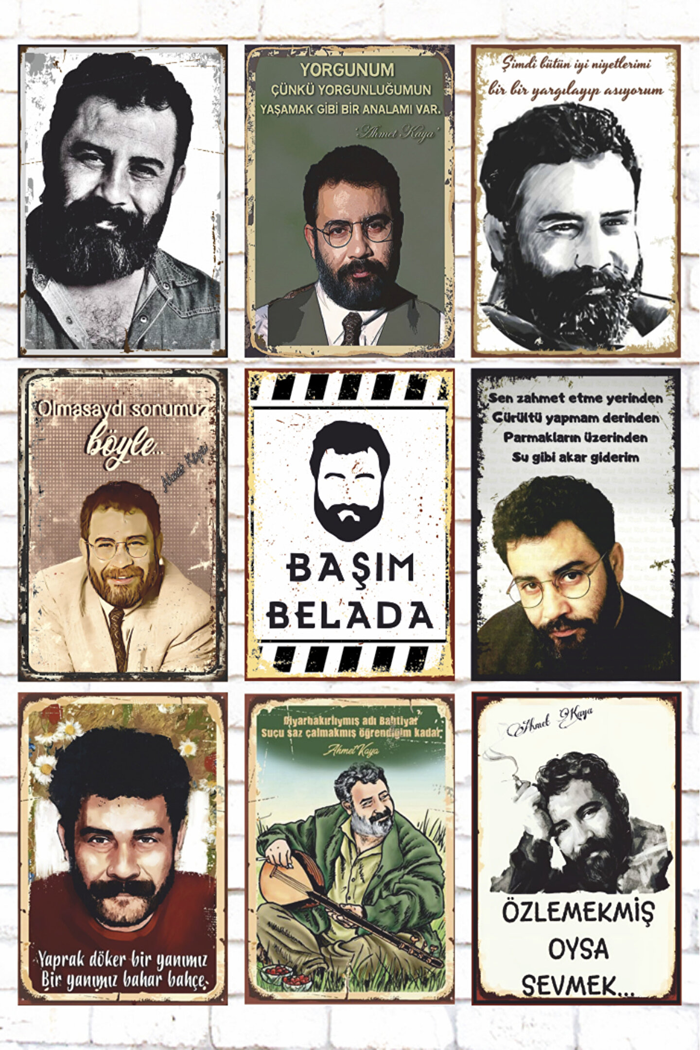- Ahmet Kaya'nın sevilen şarkılarını yansıtan 9 parça ahşap tablo seti, evinizin dekorasyonuna nostaljik bir dokunuş katıyor.- Retro tasarımıyla dikkat çeken bu set, Ahmet Kaya'nın özgün müziğinin ruhunu yansıtarak duvarlarınızda yerini alacak.- Yüksek kaliteli MDF materyalden üretilmiş olan bu tablolar, uzun ömürlü kullanım vaat ediyor.- Çerçevesiz tasarımı sayesinde kolayca asılabilir veya istenildiği gibi farklı şekillerde düzenlenebilir; böylece kişisel zevkinize göre esneklik sağlar.