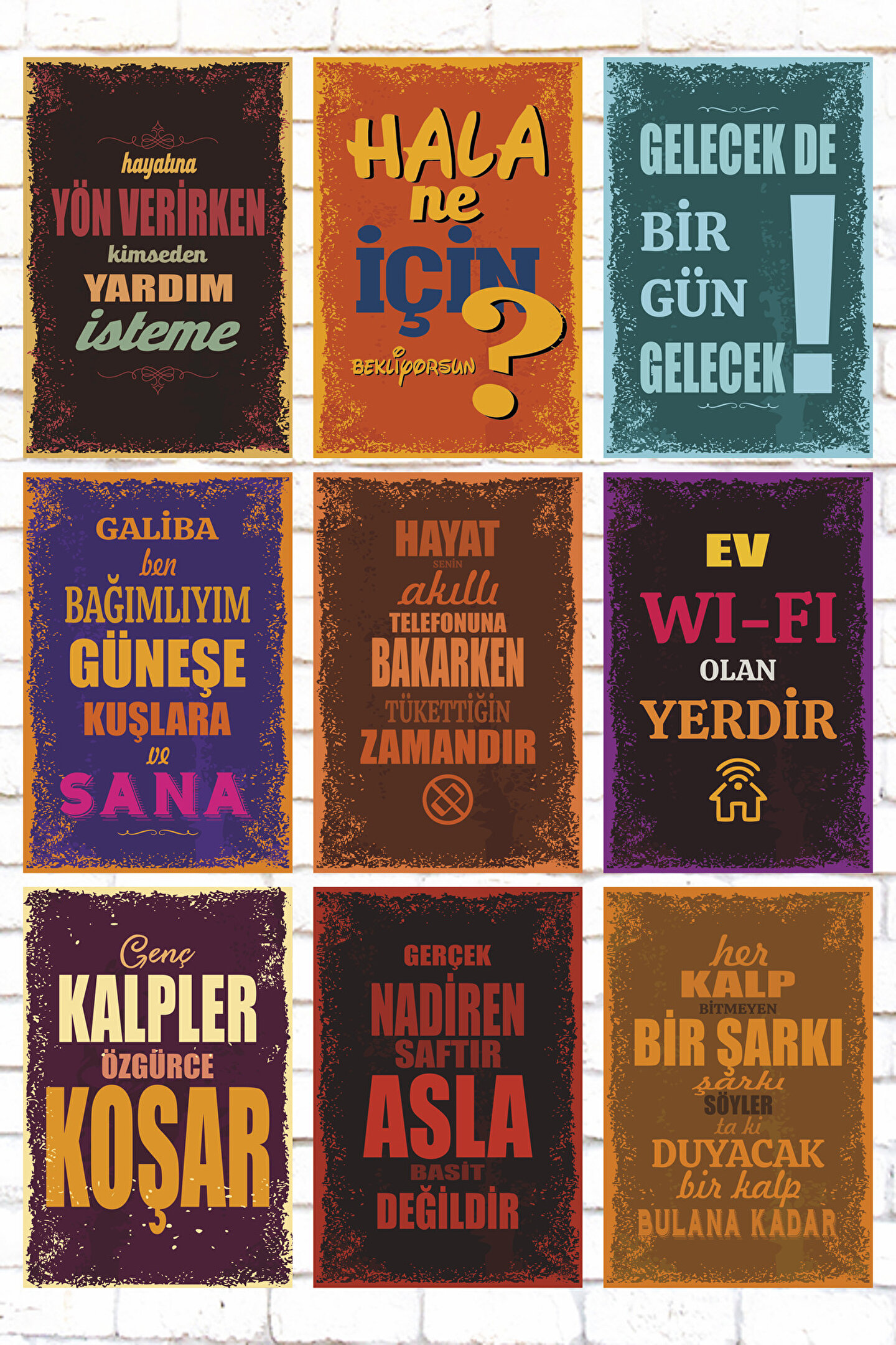 Hayat Poster 9 Parça Karışık Yazılı Ahşap Tablo Seti motivasyon cesaret verici sözler