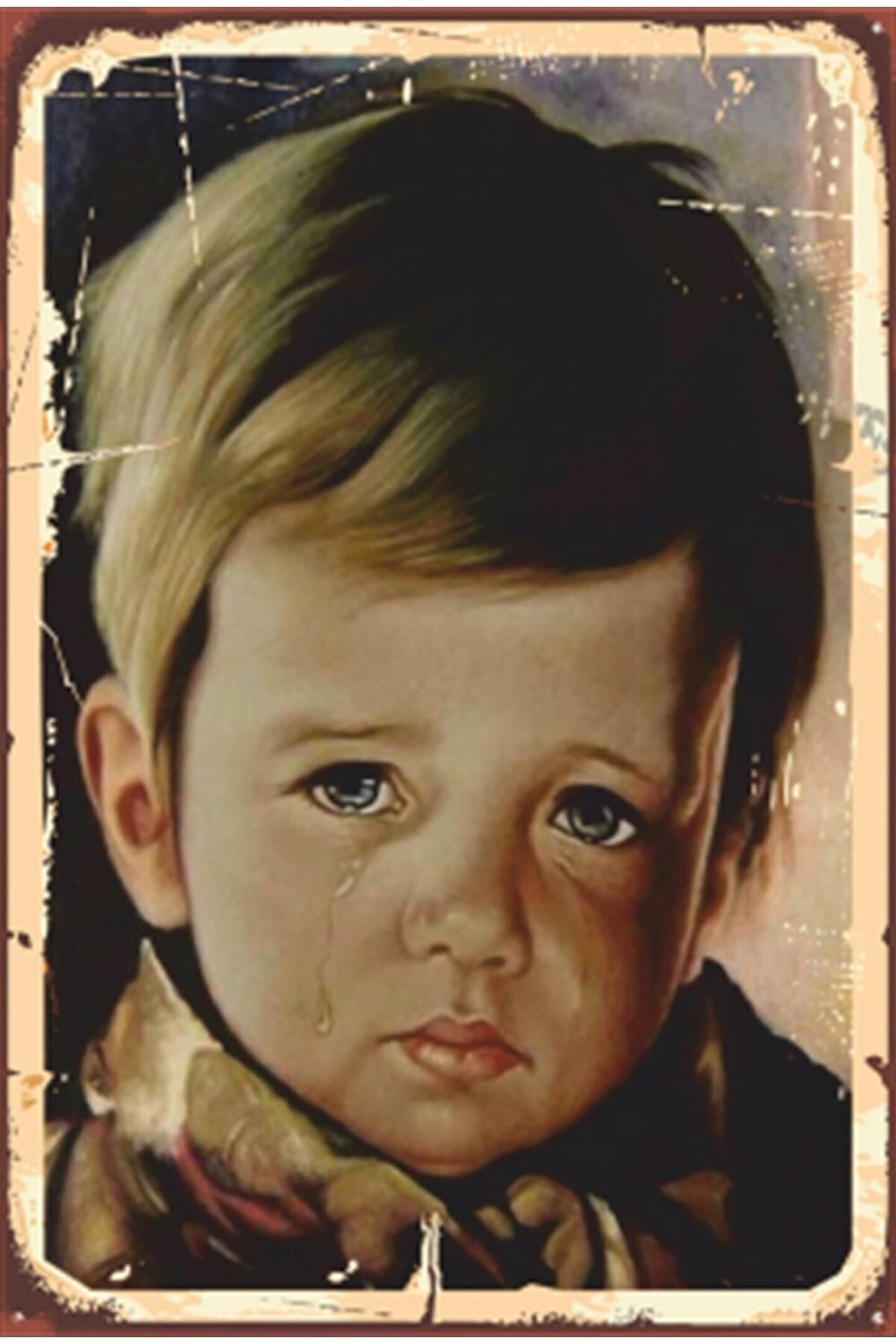 Hayat Poster Ağlayan Çocuk Tablosu Retro Ahşap Poster