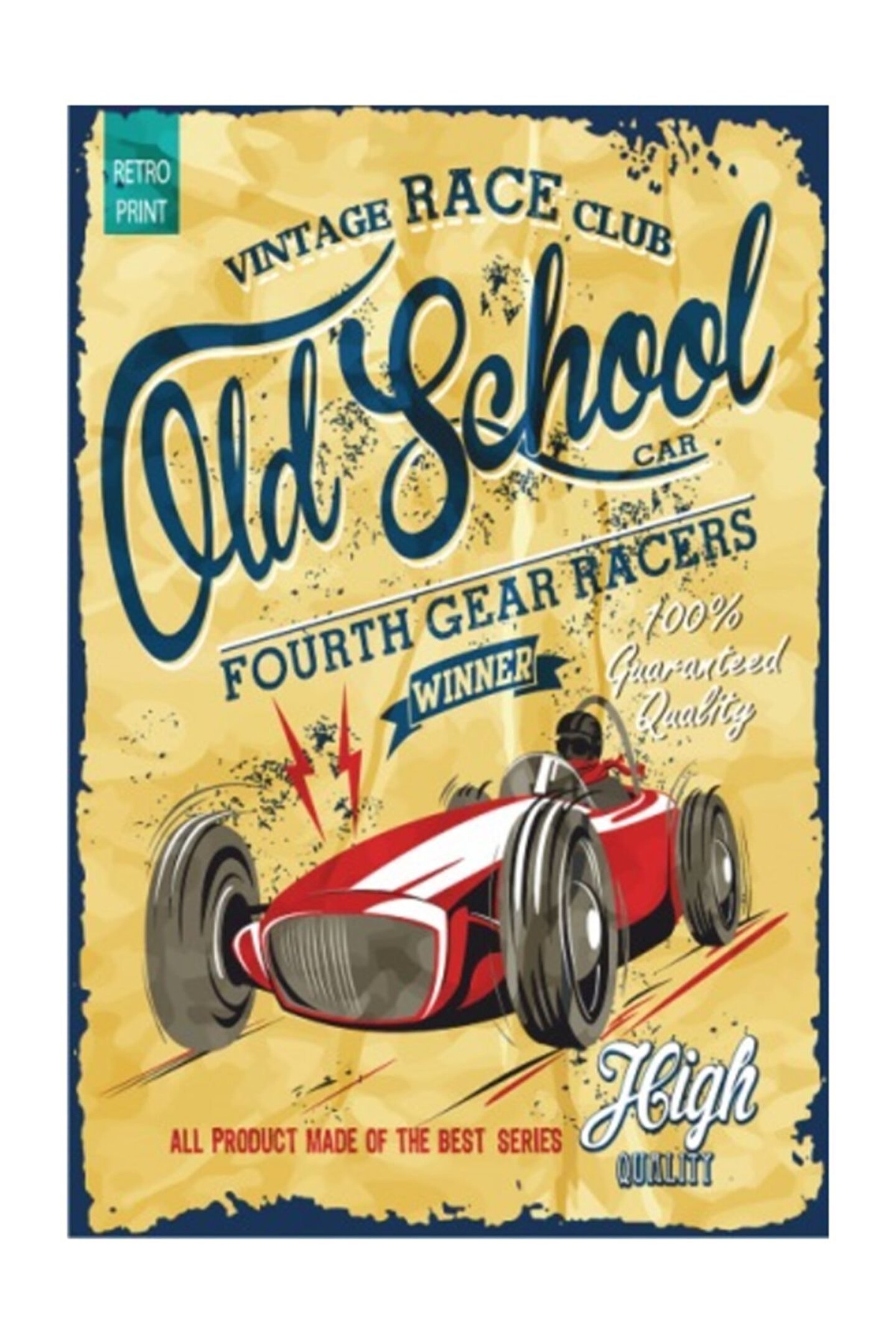 Hayat Poster Araba Yarışı Retro Vintage Ahşap Poster