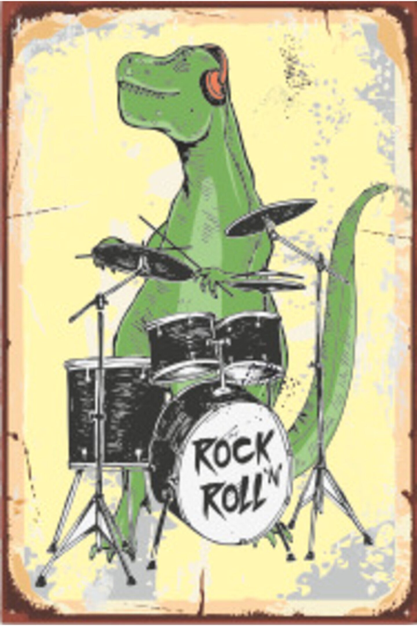 Hayat Poster Bateri Çalan Timsah Retro Ahşap Poster 20x30 cm