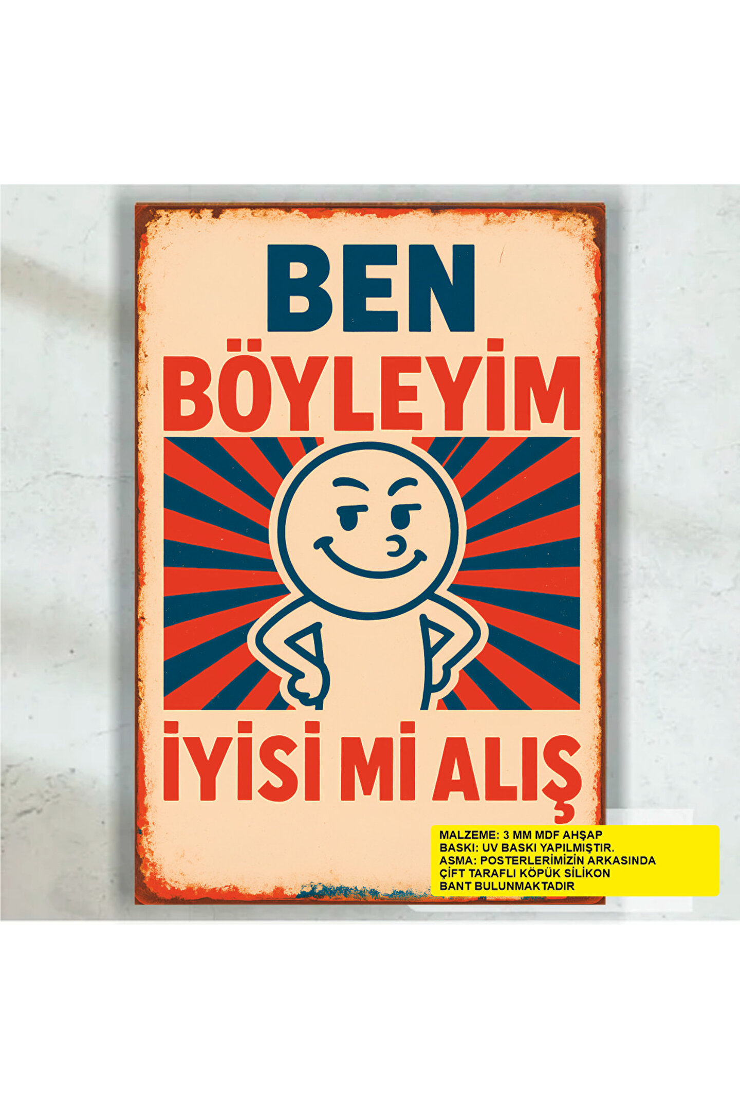 - Retro tasarımıyla dikkat çeken bu ahşap poster, evinizin veya ofisinizin atmosferini değiştirecek.; - Tek parça halinde gelen bu ürün, kolay montaj avantajı sunarak zaman kazandırır.; - Komik esprilerle süslenmiş sözleriyle mizah anlayışınızı yansıtan bu poster, günlük yaşamınıza neşe katar.; - Çerçevesiz yapısı sayesinde istediğiniz herhangi bir alanda rahatlıkla kullanabilirsiniz; ekstra çerçeve ihtiyacını ortadan kaldırır.; - Yerli üretim olan bu ürün, Türk malı olmanın gururunu yaşamanızı sağlar.