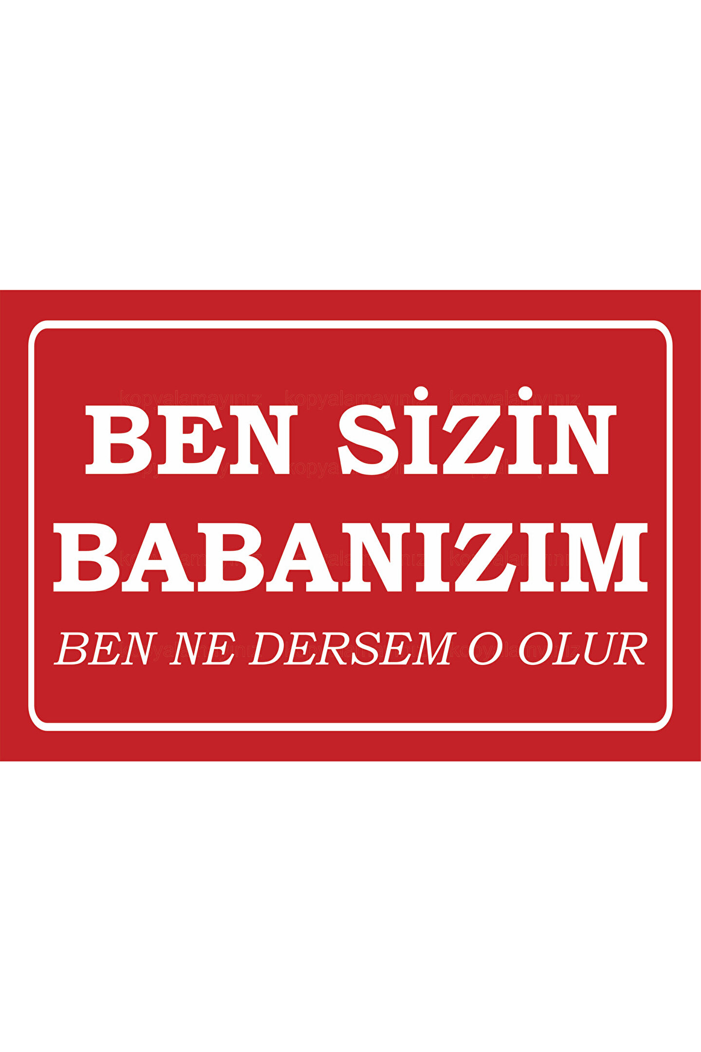 - Retro tarzıyla evinizin dekorasyonuna nostaljik bir dokunuş katar.; - MDF malzemesi sayesinde dayanıklı ve uzun ömürlü kullanım sunar.; - Çerçevesiz tasarımı ile duvarlarınıza modern ve minimalist bir görünüm kazandırır.; - Tek parça halinde gelmesi, kolay montaj imkanı sağlar ve ekstra çerçeve ihtiyacını ortadan kaldırır.; - "Ben sizin babanızım ben ne dersem o olur" sözüyle eğlenceli ve esprili bir atmosfer yaratır.