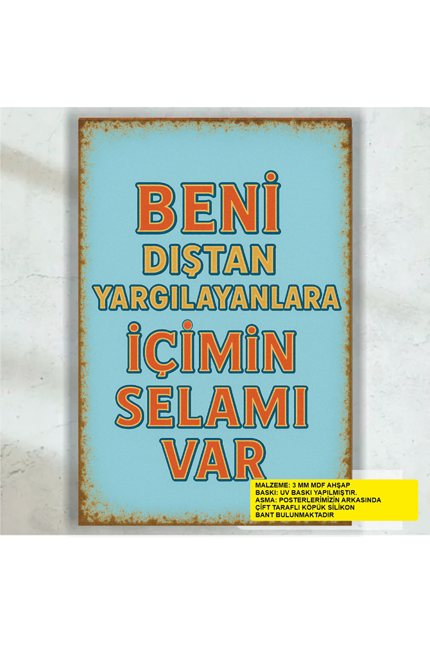 - Retro tasarımıyla dikkat çeken bu poster, evinizin veya ofisinizin dekorasyonuna nostaljik bir dokunuş katıyor.; - Tek parça halinde gelen bu ürün, kolay montaj avantajı sunarak zaman kazandırıyor.; - İçten yargılamaya karşı güçlü bir duruş sergileyen mesajlarıyla dikkat çeken poster, duvarlarınıza anlam katıyor.; - Çerçevesiz yapısı sayesinde istediğiniz boyutta ve mekâna kolayca uyum sağlayabiliyor.; - Türkiye'de üretilmiş olmasıyla yerel sanatçıların yeteneğini yansıtan bu poster, kültürel mirasınıza katkıda bulunuyor.