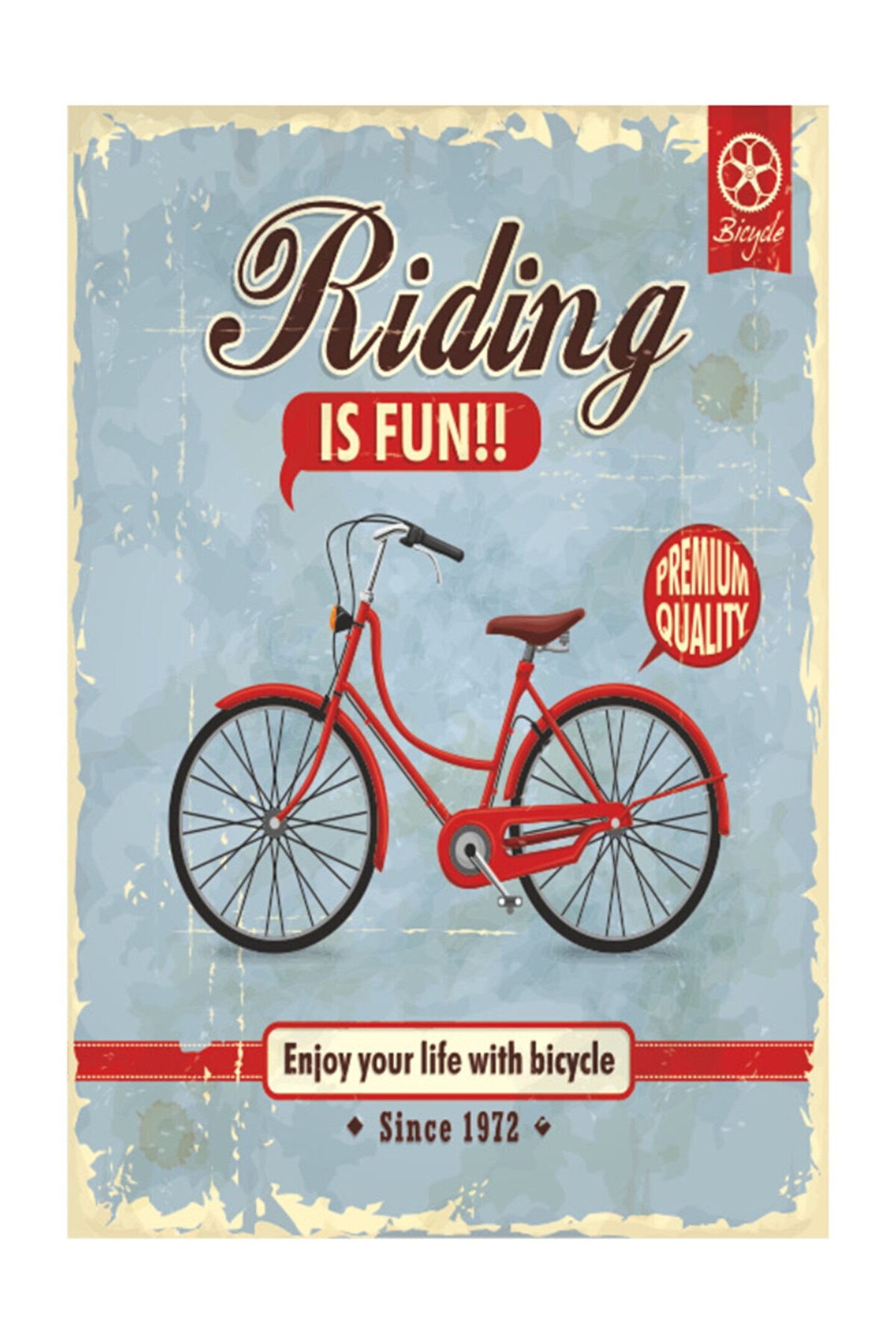 Hayat Poster Bisiklete Binmek Eğlencelidir Retro Vintage Ahşap Poster