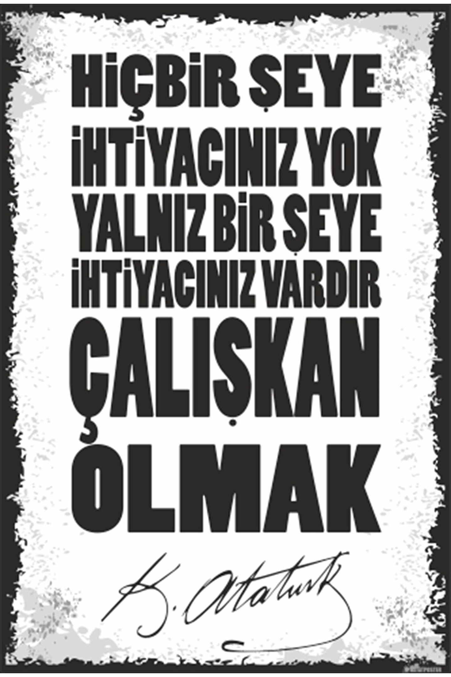 Hayat Poster Çalışkan Olmak Atatürk Motivasyon Sözleri Retro Ahşap Poster