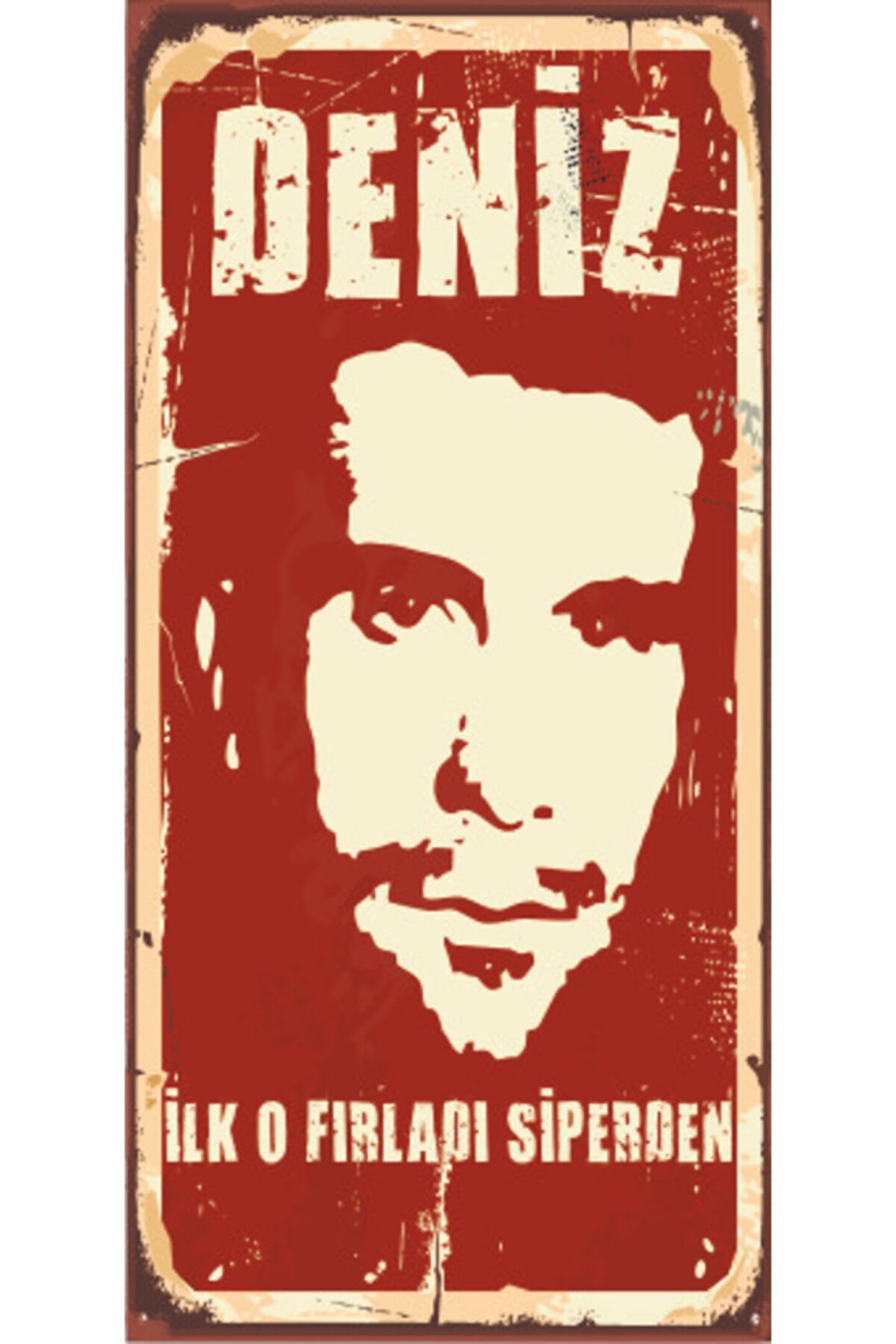 Hayat Poster Deniz Gezmiş (10 Cm X 20 Cm) Mini Retro Ahşap Poster