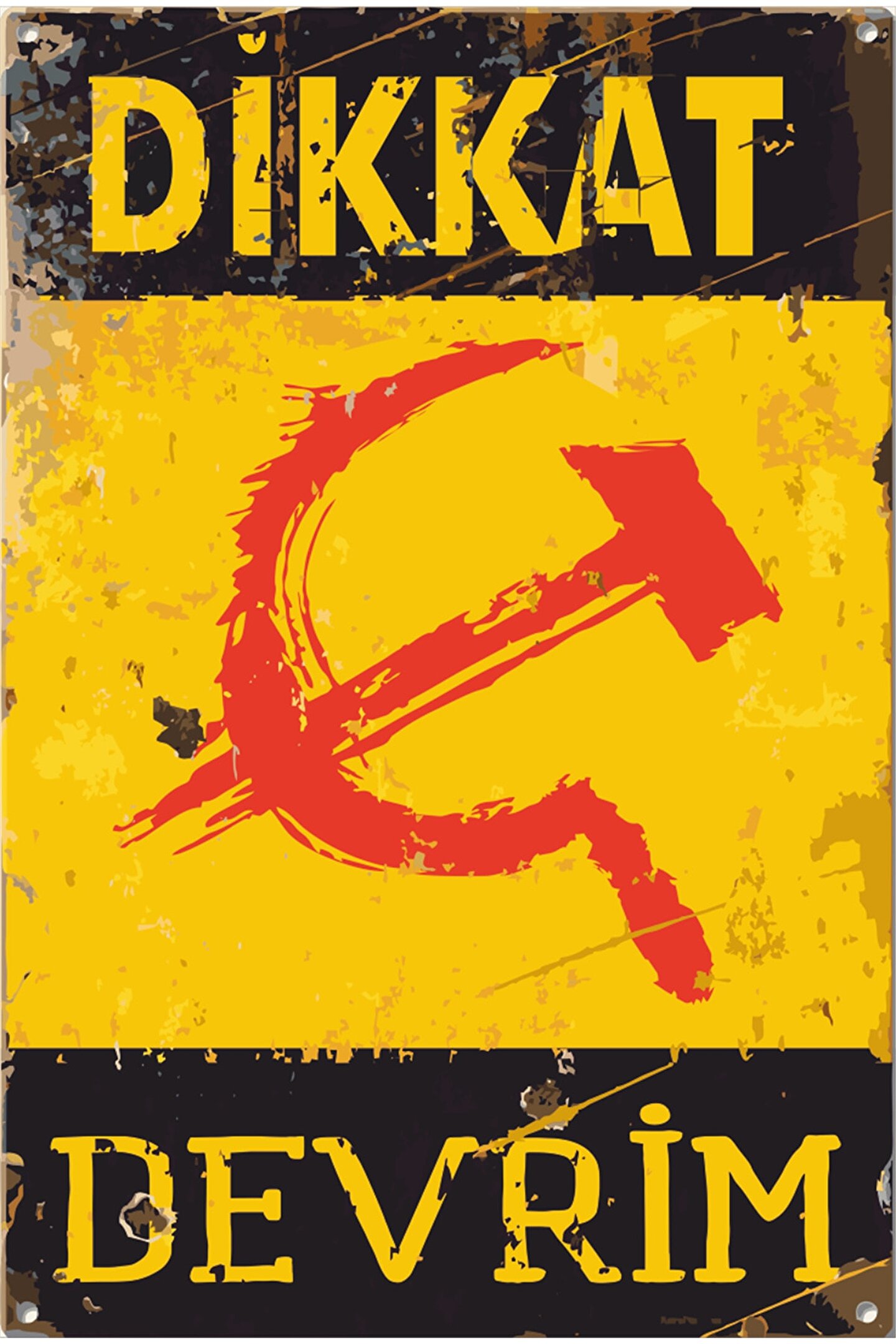 Hayat Poster Dikkat Devrim Orak Çekiç Sosyalizm Uyarı Levhası Retro Ahşap Poster
