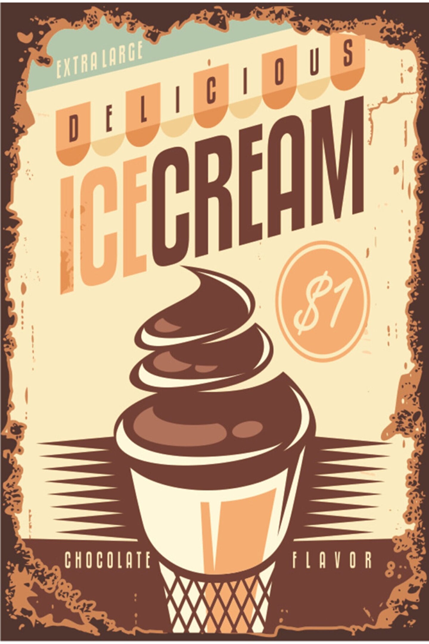 Hayat Poster Dondurma Mutfak Posterleri- 3 Retro Ahşap Poster